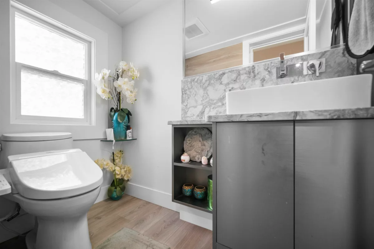 Stunning Renovation in Prime Killarney! Over 2,600 sq.ft. of upscale open-concept living with 6 bedrooms & 3 bathrooms, including a 2-bedroom mortgage helper. Fully renovated with new custom cabinetry, flooring, designer lighting, full appliance & laundry package, new furnace, and A/C. Luxurious primary ensuite features a steam shower. Added value with alarm system, colour night vision camera system with monitor, and permanent holiday lighting. Fantastic location-walk to Champlain Mall, community centre, schools, library, and parks. Just minutes from Metrotown, Langara College, Fraserview Golf Course, River District & more. A must-see home you'll truly appreciate!