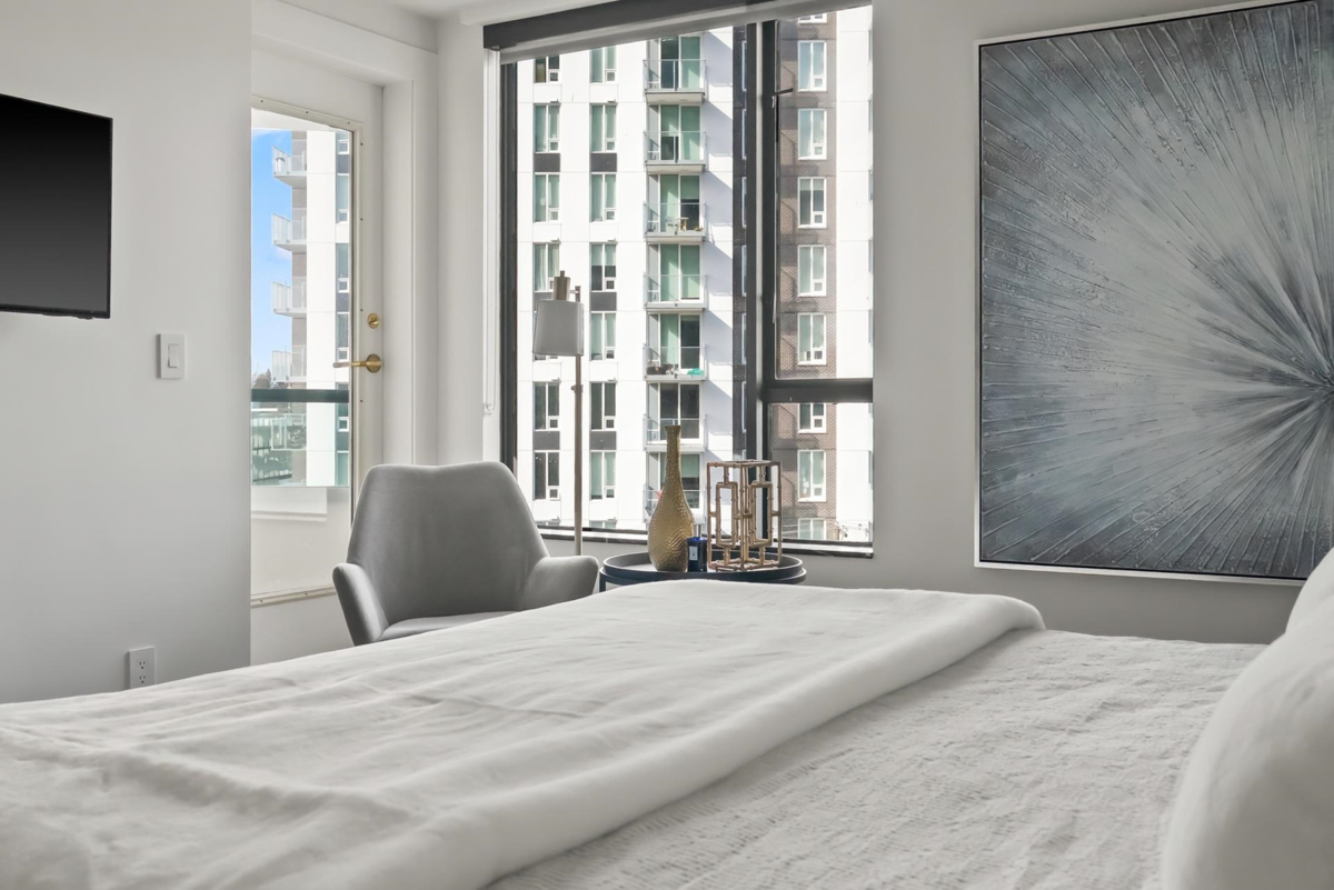 Welcome to one of West Vancouver's most established concrete residences. This extensively remodelled 2-bed/2-bath corner home at 'Westroyal' offers a spacious 1,286sf open-concept layout designed for both comfort & entertaining. Floor-to-ceiling windows fill the home w/natural light, offerin outlooks of sunset skies, mountain silhouettes, & peek-a-boo views of the Lions Gate Bridge & Burrard Inlet. The interior feats high-end finishes, incl upgraded flooring & modern chef's kitchen. The primary suite incl a WIC & spa-inspired ensuite w/jetted soaker tub. 2 parking stalls & storage locker. Residents of The Westroyal enjoy resort-style amenities incl indoor pool, hot tub, sauna, fitness centre. Quick access to downtown Vancouver, steps to shopping & dining at Park Royal and Ambleside Beach.