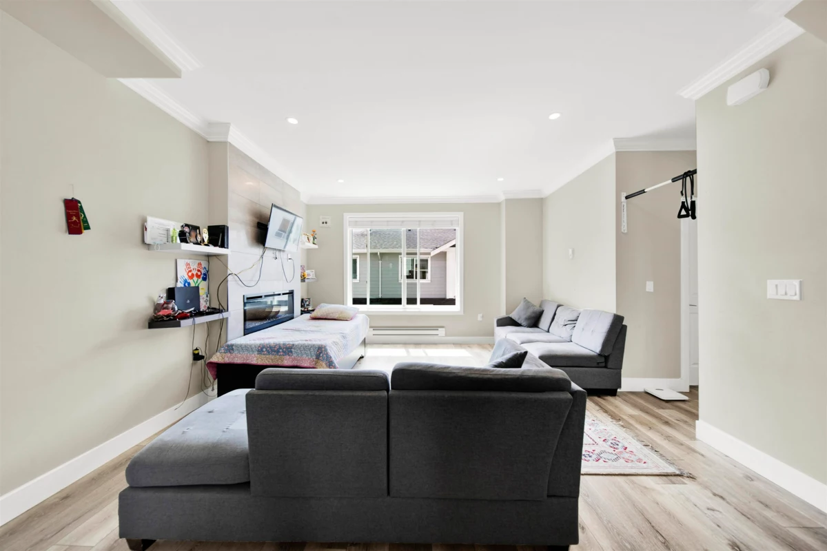 Stunning Corner Unit at Maclure Point! This beautifully designed home features over 1,800 sq. ft. of contemporary West Coast living, complete with a double car garage and 9’ ceilings on the main floor. The modern kitchen boasts sleek flat-panel cabinetry, solid quartz countertops, stainless steel appliances, and is complemented by stylish designer lighting fixtures in both the kitchen and dining areas. Relax by the electric fireplace in the spacious living room. The master bedroom includes a generous walk-in closet for added convenience. Enjoy outdoor space with a fenced yard, and benefit from an unbeatable location—just minutes from schools, freeway access, walking trails, and urban amenities. Rentals and 2 pets allowed—perfect for families or investors!