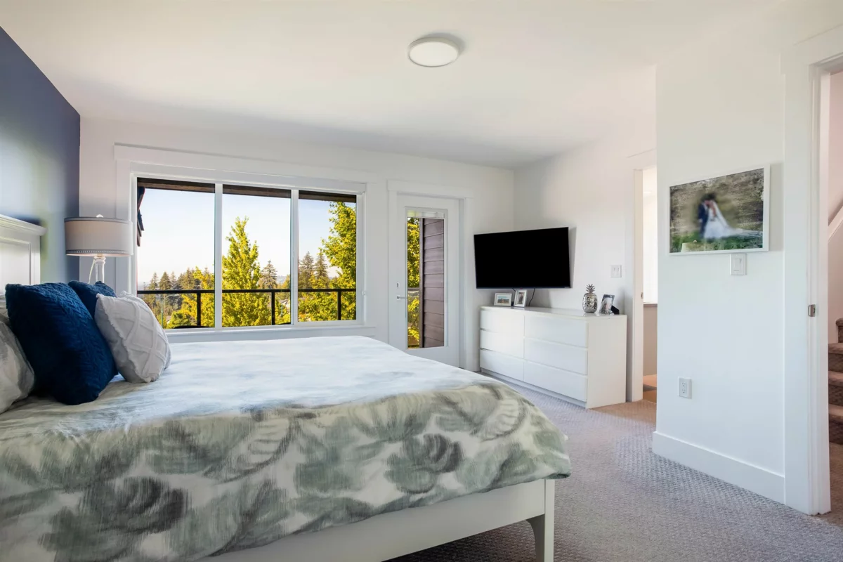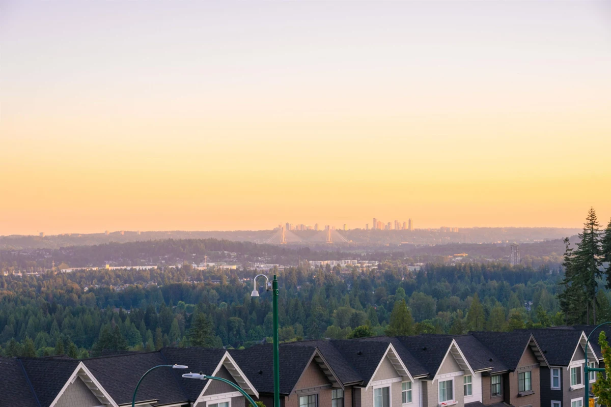 RARE ROOFTOP TOWNHOME WITH STUNNING VIEWS. This 4-bed, 4-bath townhome on Burke Mountain offers 2,621 sq ft of bright, modern living with Fraser River views from two balconies and a massive private rooftop patio. Built in 2020, it features central air, EV charging, engineered hardwood, custom closets, premium appliances, spa-inspired baths, UV roller shades, and a 2-car garage. Perfect for entertaining, with a rooftop ideal for BBQs or morning coffee above the trees. Steps to parks, trails, schools, cafés, and minutes to shops and dining. Strata fees include snow, trash, and grounds for easy, lock-and-leave living.