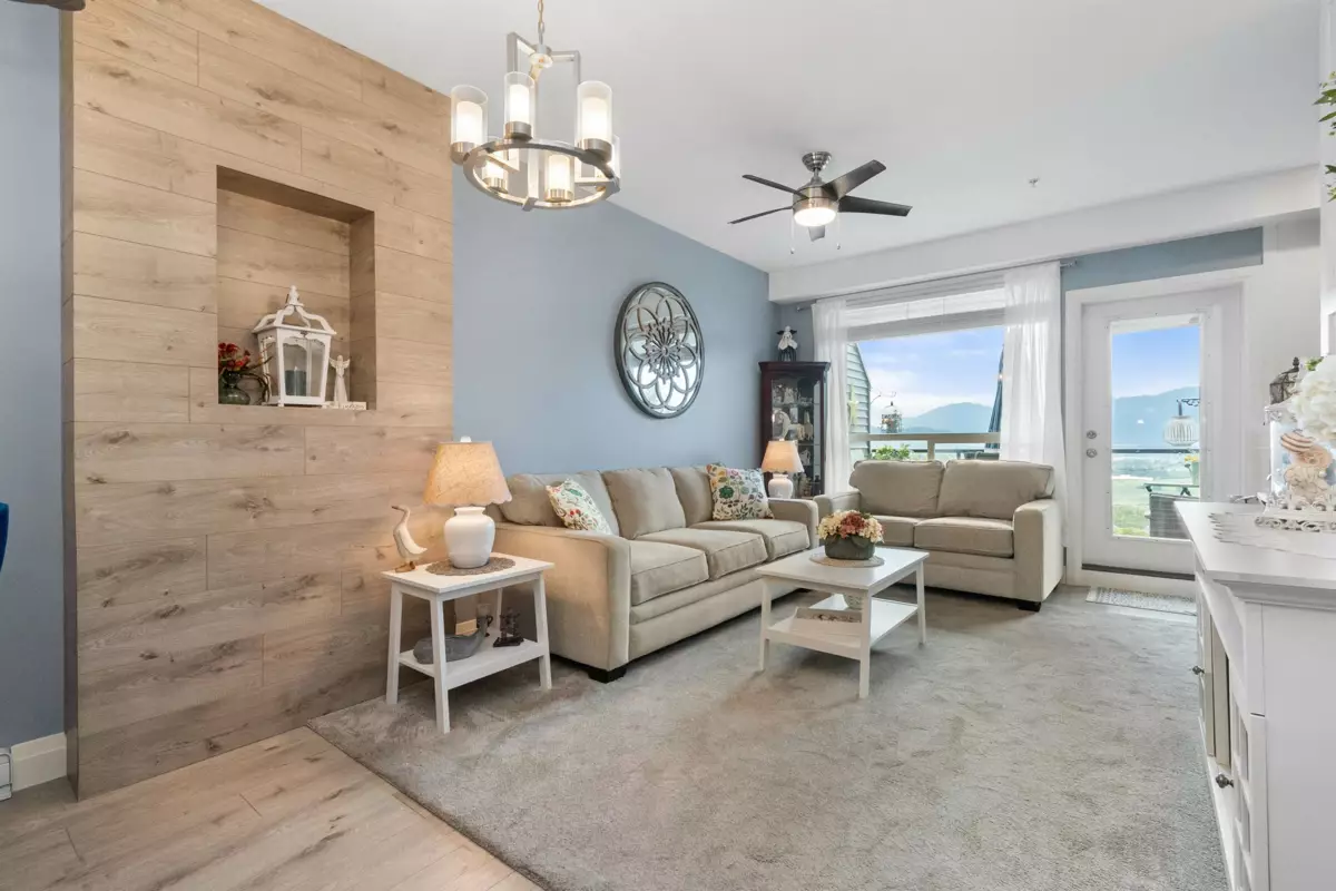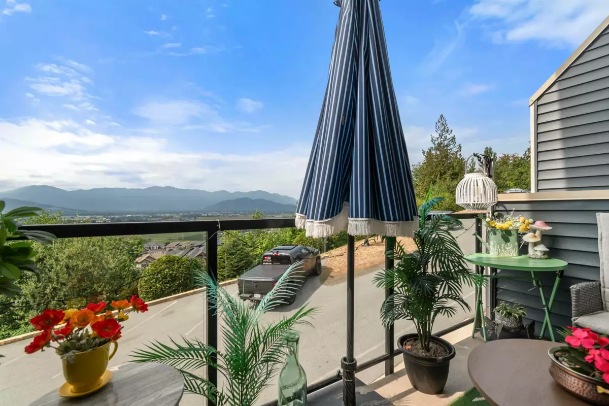 Check out the spectacular, unobstructed, Valley views from this unit! But first, starting from the moment you enter the home, you will appreciate the upgraded details making the home stand apart from others including the upgraded flooring, decorative feature walls in the living space, and a tasteful color palette. Upstairs has 3 bdrms, with the primary bedroom located at the front of the unit facing northwest, and has an amazing view overlooking Chilliwack. The tandem garage gives space for either 2 vehicle parking, or can be finished off to offer additional living space/media room. Backyard features fruit and flower trees, as well as an established perennial garden with ornamental flowering bushes and plants w/accent water fountain feature, and storage shed. Call for your private viewing!