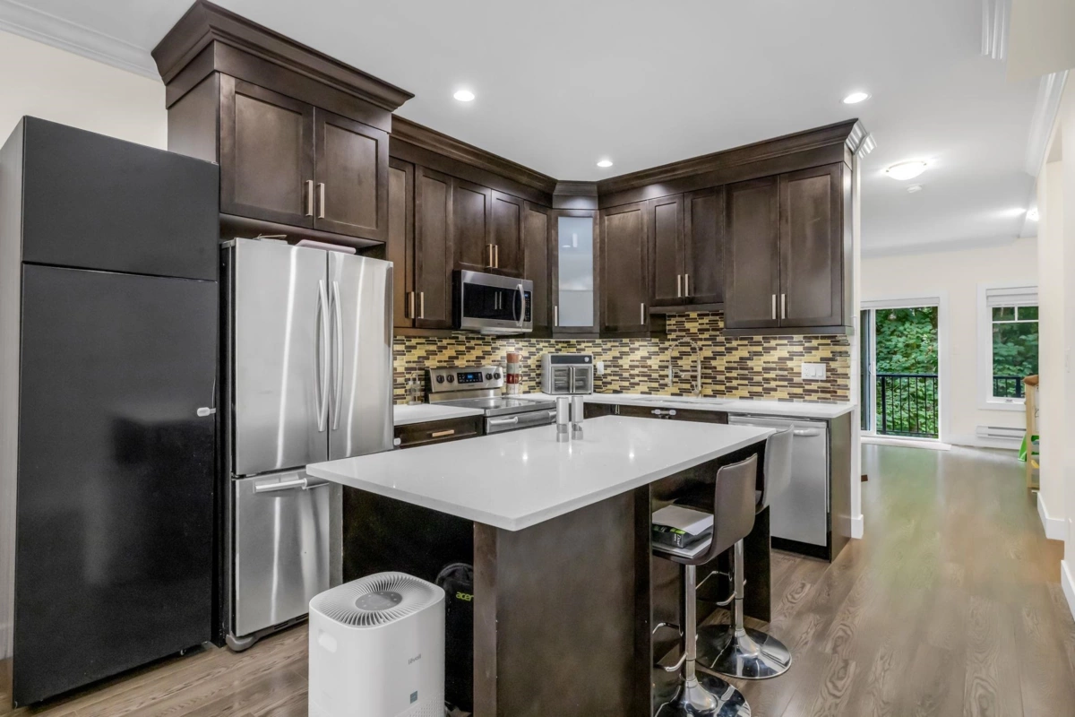 Welcome to This Very Cozy & Family-Oriented Complex! ~This Great Self Managed complex has only 9 Units & Very Low Strata fees of $250.00/Month only ~ This Very Well Kept 3 Bed & 2.5 Bath Home comes with S/S appliances & quartz counter tops & is in a Move-in Condition with Nothing that needs to be Done. The Backyard is beautifully updated with Artificial Turf & wood fire pit & a BIG Bonus: Backyard is Facing the Green Belt, So you can enjoy the time with your loved ones in a quiet and private environment. A Perfect Starter Home for FIRST TIME HOME BUYER or An I nvestor. Conveniently located near Hyland, Bell Centre, Grocery stores, YMCA, & within walking distance to both Elementary & Secondary schools, as well as just steps away from a bus stop & easy access to King G Hwy & HWY10.