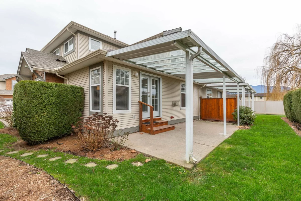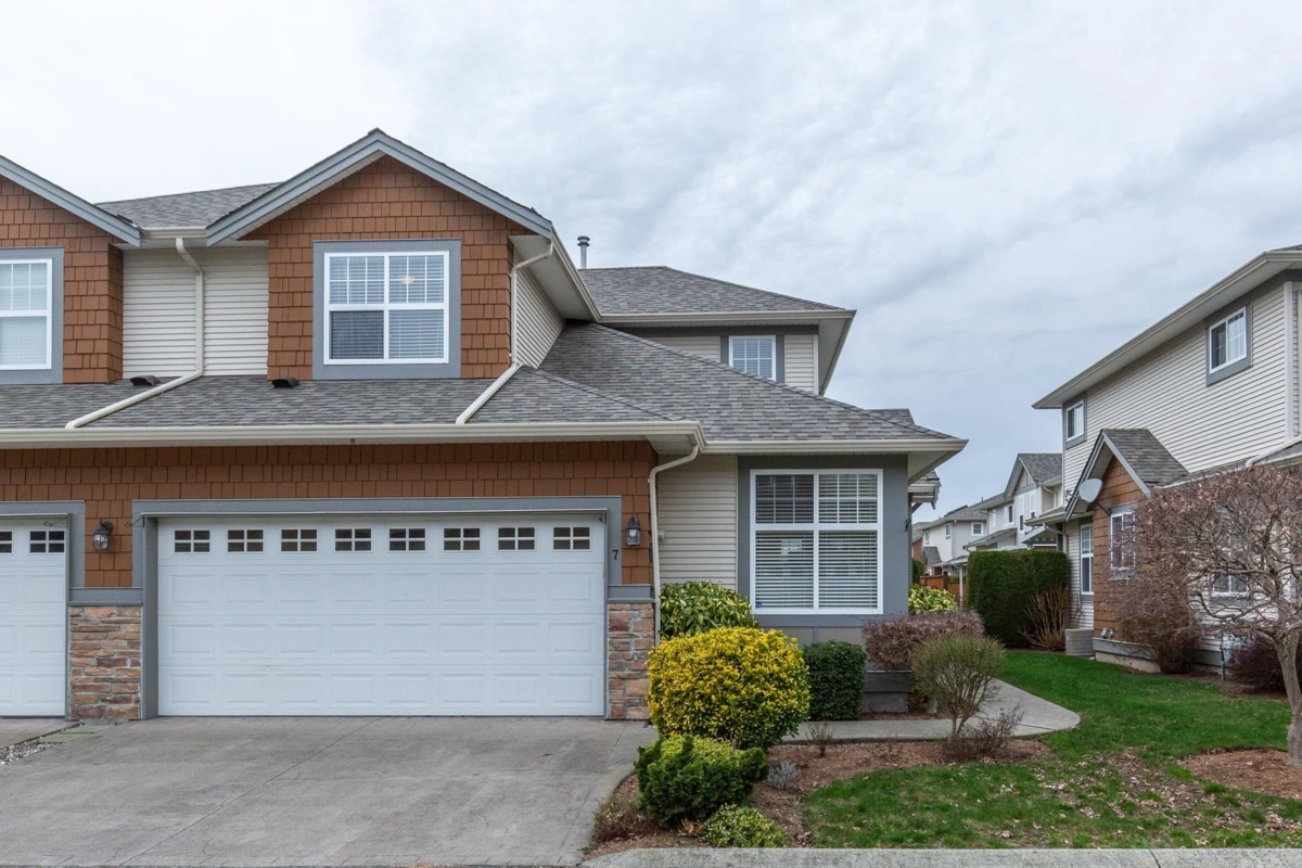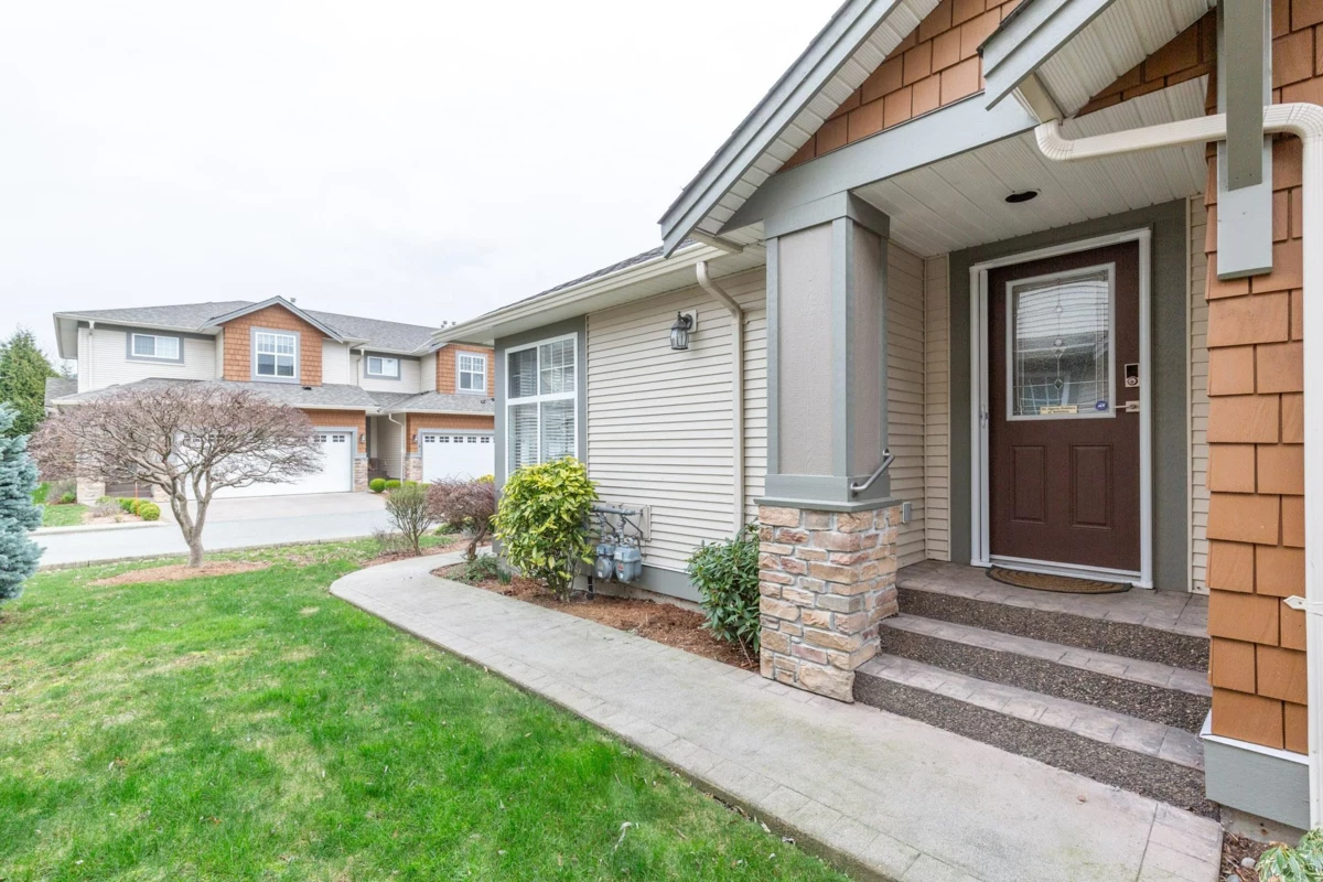 Welcome to convenient main-level living in this BRIGHT and BEAUTIFULLY UPDATED end-unit townhome at Silver Creek Estates in Chilliwack. Featuring a vaulted-ceiling living room with cozy gas fireplace, stainless steel appliances, naturally lighted corner office, tasteful updates throughout, and a covered deck for year-round enjoyment. The primary bedroom is on the main level with a large walk-in closet, ensuite, powder room and side-by-side laundry for added convenience. Stay comfortable with a brand new furnace and A/C! Enjoy an impressive 847 sq ft crawlspace for storage, plus a full 2-car garage and two additional parking spots out front. Clean, well-cared-for, and ideally located near golf, shopping, and quick highway access. THIS IS THE ONE YOU HAVE BEEN WAITING FOR!