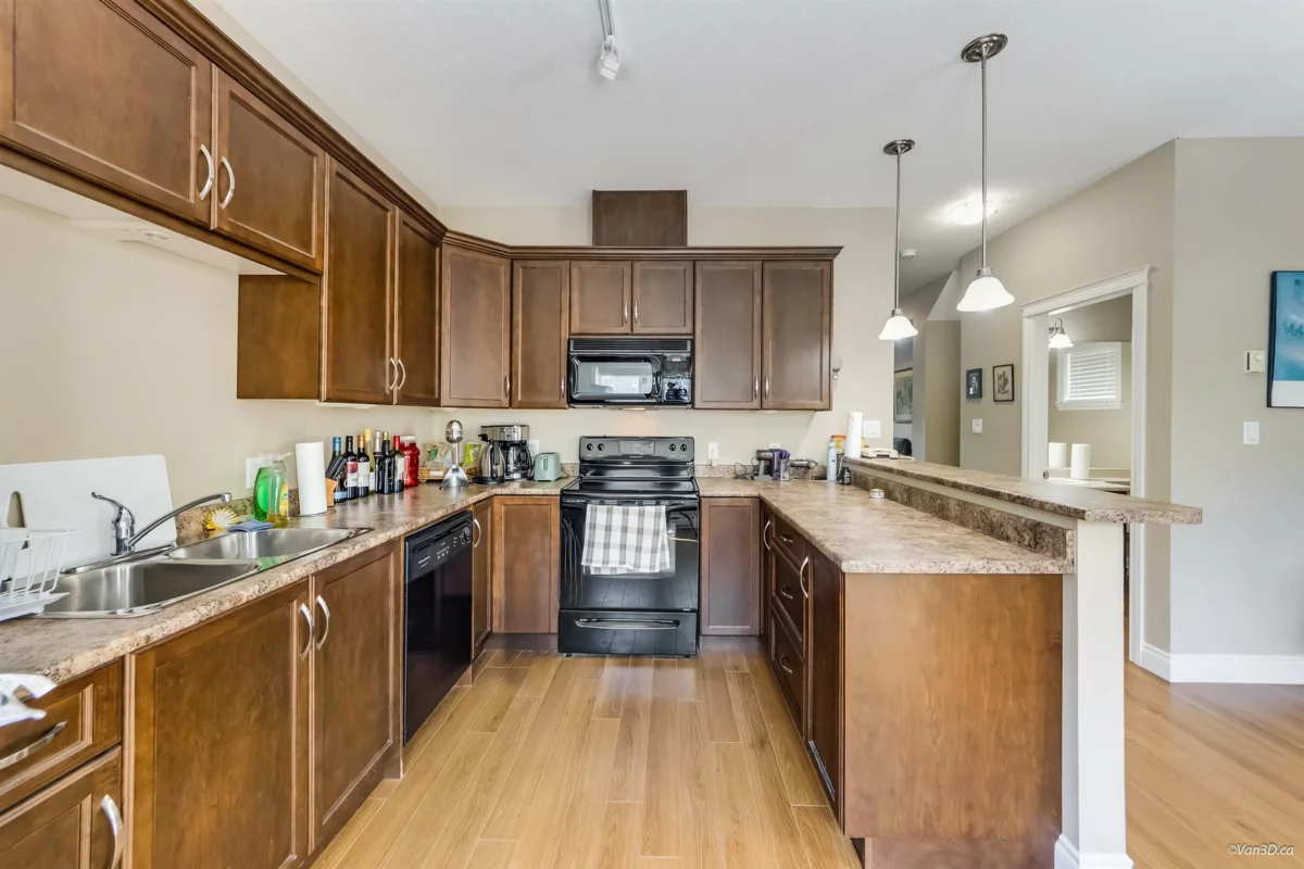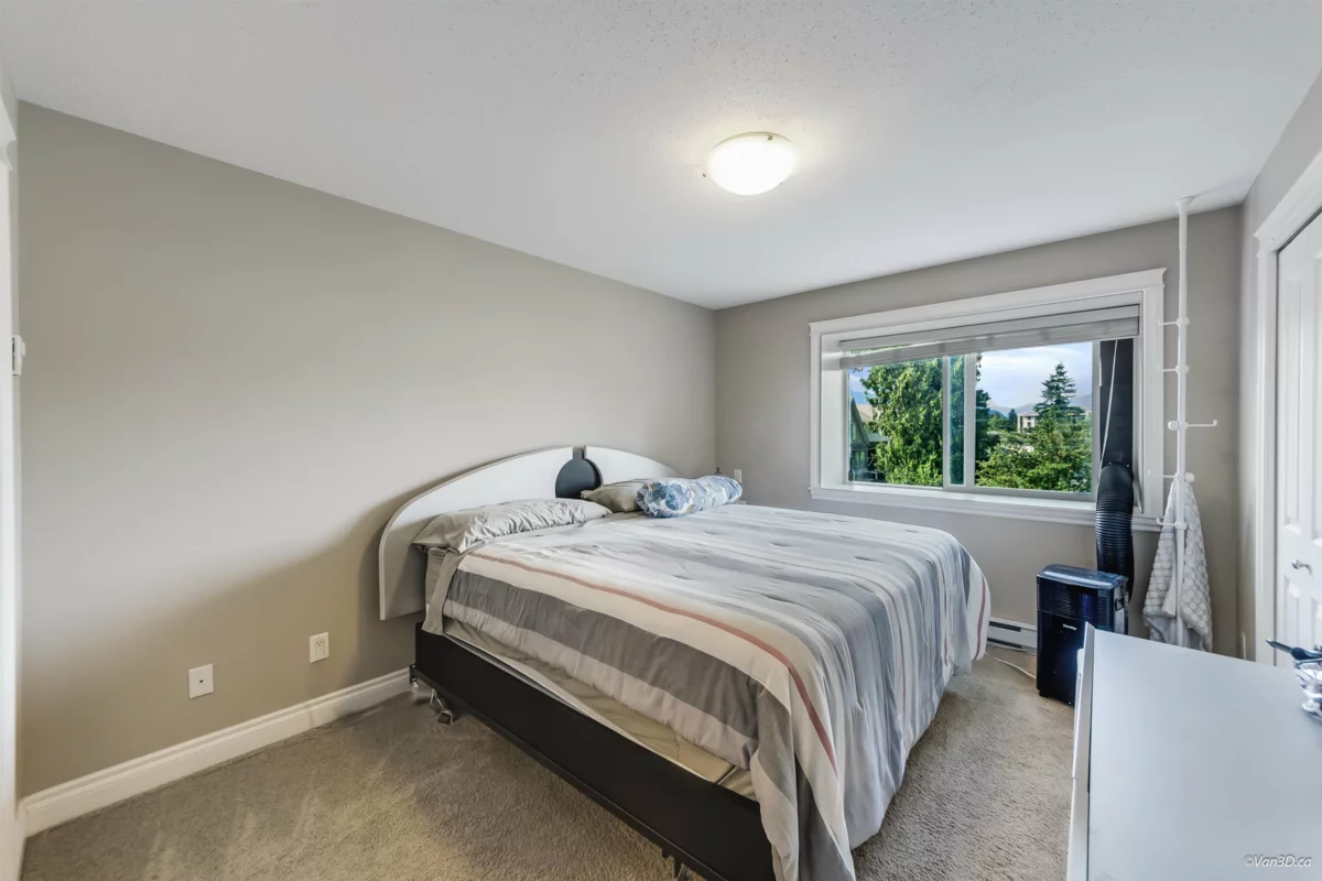 Bright END-Unit Townhouse in the popular Eversfield Lane community – 1,727 sq. ft. | 4 Beds | 2.5 Baths | Double Garage. Approx. 200sqft backyard, big fully fenced yard + large deck with mountain views perfect for entertaining or relaxing. Versatile layout: 4 bedrooms or 3 + rec room. Natural light throughout, private setting, minutes to Hwy 1, District 1881, parks, schools, shops & dining. Comfort + convenience in one!