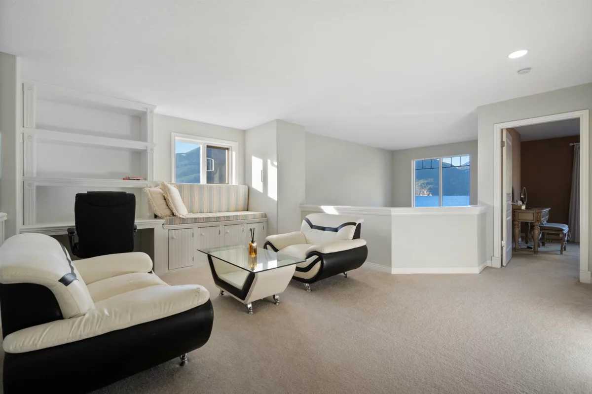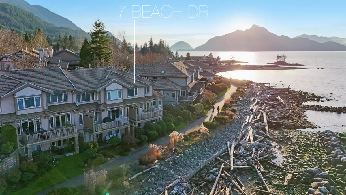 True WATERFRONT living at #7 Olivers Landing! This end-unit townhome offers approximately 3600sf of indoor living space over three levels with UNOBSTRUCTED water views from almost every room! Up, find two spacious bedrooms both with ensuite bathrooms and spacious walk in closets. The top floor landing can be used as a family room, office or gym. On the main level, options for large office or primary bedroom with private ensuite give this home flexibility to age in place. Over-height vaulted ceilings with large windows take in the views of Howe Sound from this front row WATERFRONT home. Open main level spaces are ideal for entertaining friends and family! Down, find a spacious rec room with space for a pool table, games room and optional 4th bedroom (easy reno) with ensuite.