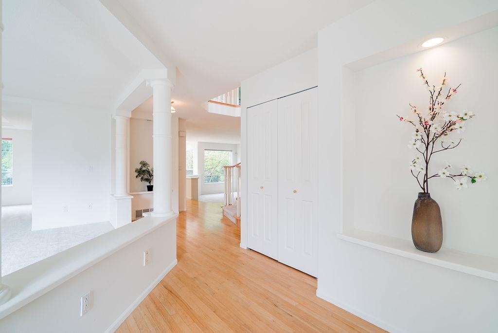 Large family home on extra large lot in Heritage Woods, Port Moody! Set on a rare 10,633 sq. ft. cul-de-sac lot! This impressive home greets you with soaring vaulted ceilings, spiral staircase, and formal living/dining areas. The main level includes a den/office (bedroom!), family room, and gourmet kitchen with granite counters and cabinetry updated in 2011. 5 BEDROOMS UPSTAIRS!! including a spacious primary with walk-in, view, and large ensuite. The lower level adds a rec room, extra large flex space, and 2 more spacious bedrooms. Freshly painted with new carpet throughout, and original baths awaiting your touch. Steps to parks and walking distance to all levels of schools: Aspenwood, Eagle Mountain Middle, Heritage Woods Secondary. Easy to show. Call for an appointment!