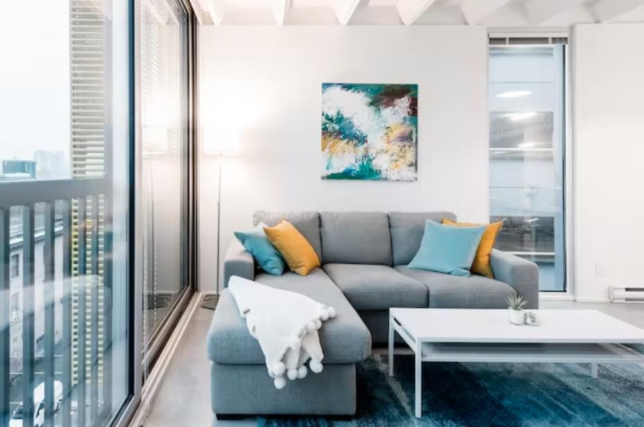 This fantastic apartment is just a 10-minute walk to the vibrant shopping district, seawall, and Rogers stadium. Enjoy easy access to trendy cafes, restaurants, and local hotspots. The property is also 20 minutes to Stanley Park and 30 minutes from Vancouver International Airport. Perfectly situated for both city life and nature adventures. Walk to Gas Town in 15 minutes and catch the sea bus to North Vancouver where you can hike or ski Grouse mountain. Main street restaurants and shopping is only a few blocks away. You'll love this bright and modern 1-bedroom apartment in one of Vancouver’s most desirable and pet-friendly buildings. Perfectly located in a funky neighbourhood, this stylish apartment offers a designer feel with all the comforts you need.