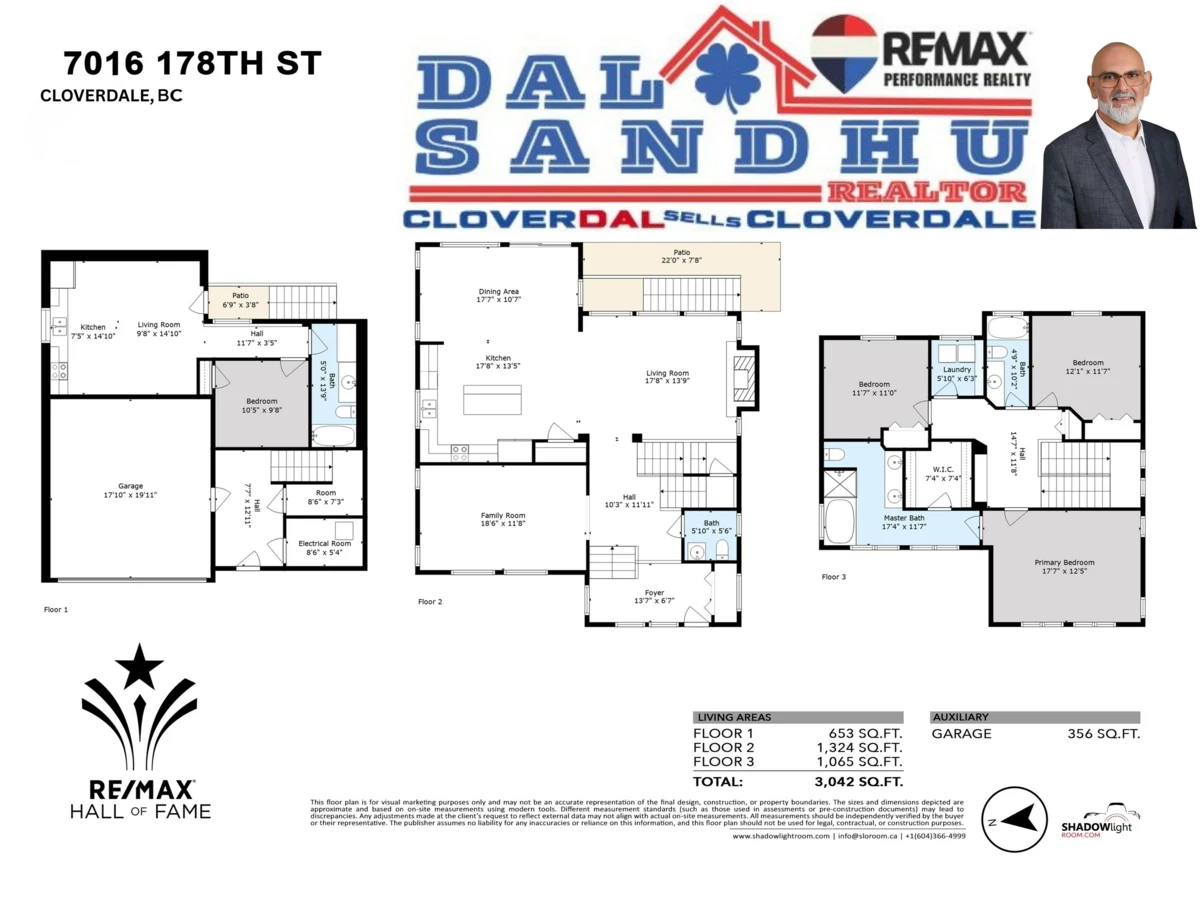 Welcome to Provinceton, one of Cloverdale's most sought-after communities. Built by Morningstar in 2009, this impressive 3-level home offers over 3,000 square feet of living space on a 3,676 square foot lot at an incredible price point. The upper floor features 3 bedrooms, including a vaulted-ceiling primary suite with a walk-in closet and spa-inspired ensuite, and conveniently located full laundry room. The main level is a bright, open-concept design with a living room, gourmet kitchen, dining area, and a den, ideal for a home office. The lower level offers a valuable 1-bedroom mortgage helper suite. Outside, enjoy a low-maintenance backyard with a covered patio.Ideally located close to schools, parks, and shopping, this home truly is an amazing gem. Call now for your personal tour!