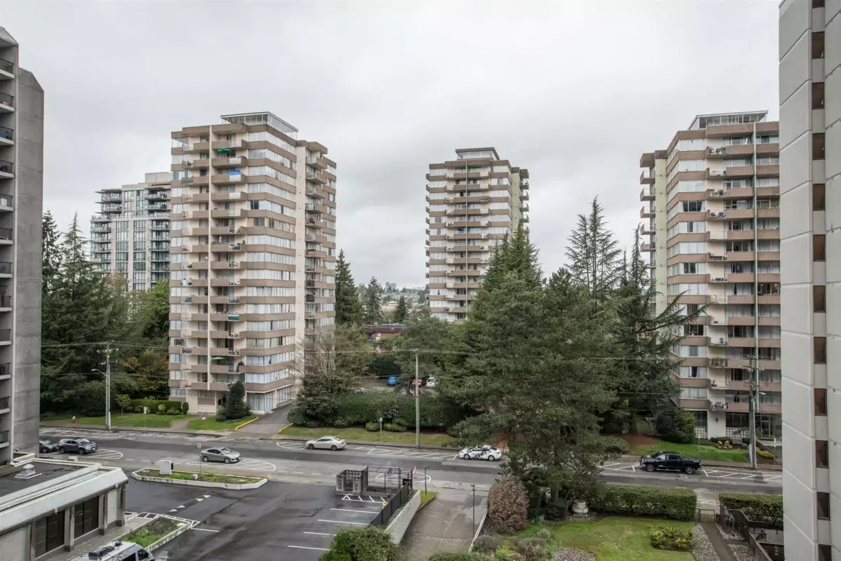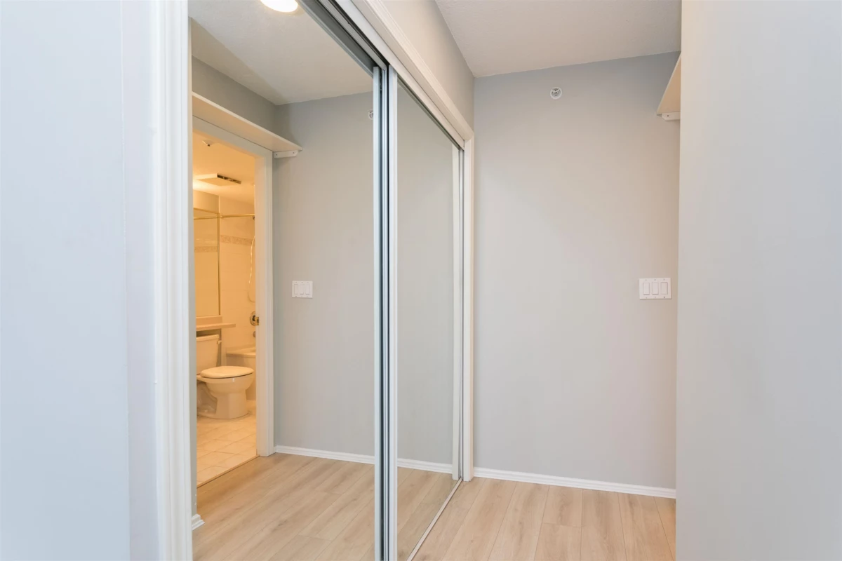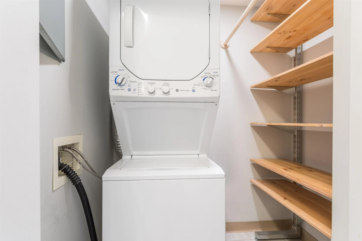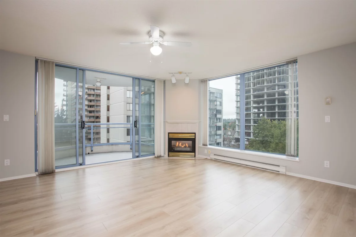Stirling Place by Bosa! This bright 2 bed, 2 full bath, 2 balcony home has an updated kitchen with newer stainless steel appliances and newer laminate flooring. Large Primary has ensuite, and both bedrooms have sliding glass doors out a balcony. Spacious living room has a cozy gas fireplace (incl in maint fee!) and double sliding doors opening to another balcony. Dining room is open to the kitchen for easy entertaining. 1 large EV ready parking and full size secure locker. Exercise room and club room in lobby, bike room and workshop in garage. Piping and elevators updated. Solid concrete highrise in the heart of Uptown – across from Royal Centre Mall & Save On Foods, with all the shops and eats along Sixth St. Moody Park, Century House, schools and library close by.