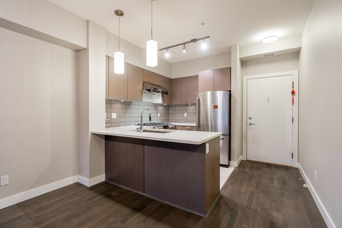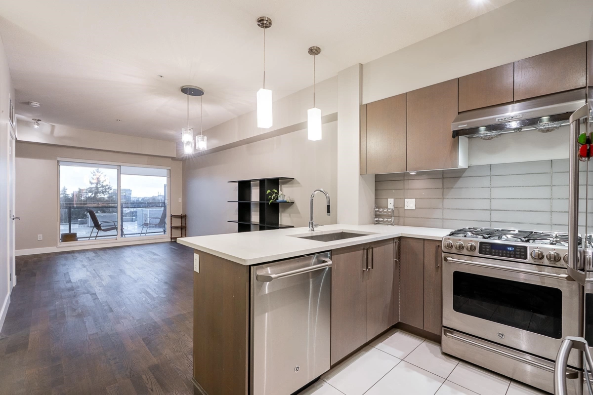 Welcome to Parc Riviera! This sun-filled, south-facing penthouse offers an abundance of natural light and a well-designed, spacious layout. The home features 1 large bedroom, 1 bathroom, and a generous balcony. Quality finishes include hardwood flooring, stainless steel appliances, a 5-burner gas range and quartz countertops in both the kitchen and bathroom. Enjoy year-round comfort with an energy-efficient geothermal heating and cooling system. Resort-style amenities include an indoor swimming pool, hot tub, fitness centre, party room, park space, playground, and scenic riverfront dyke trails. Ideally located within walking distance to Catchment Elementary School and within the Cambie Secondary catchment. Conveniently close to Costco, SkyTrain, YVR Airport, supermarkets, and restaurants.