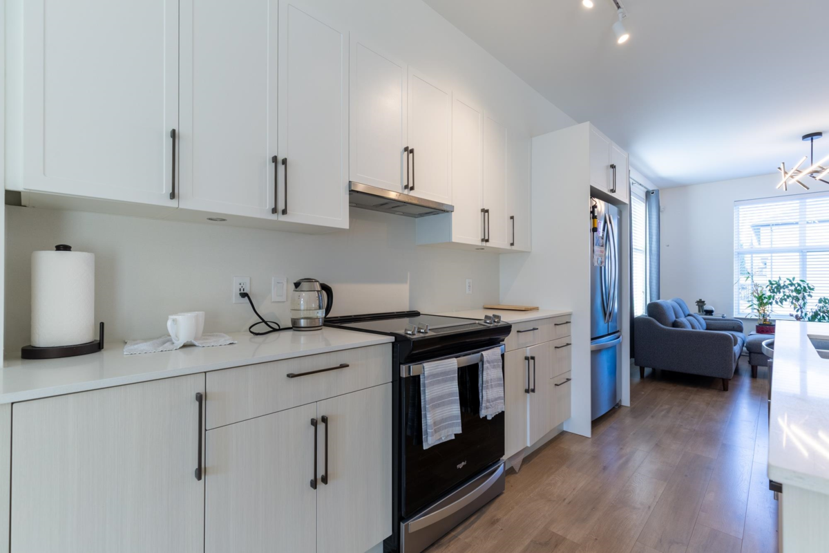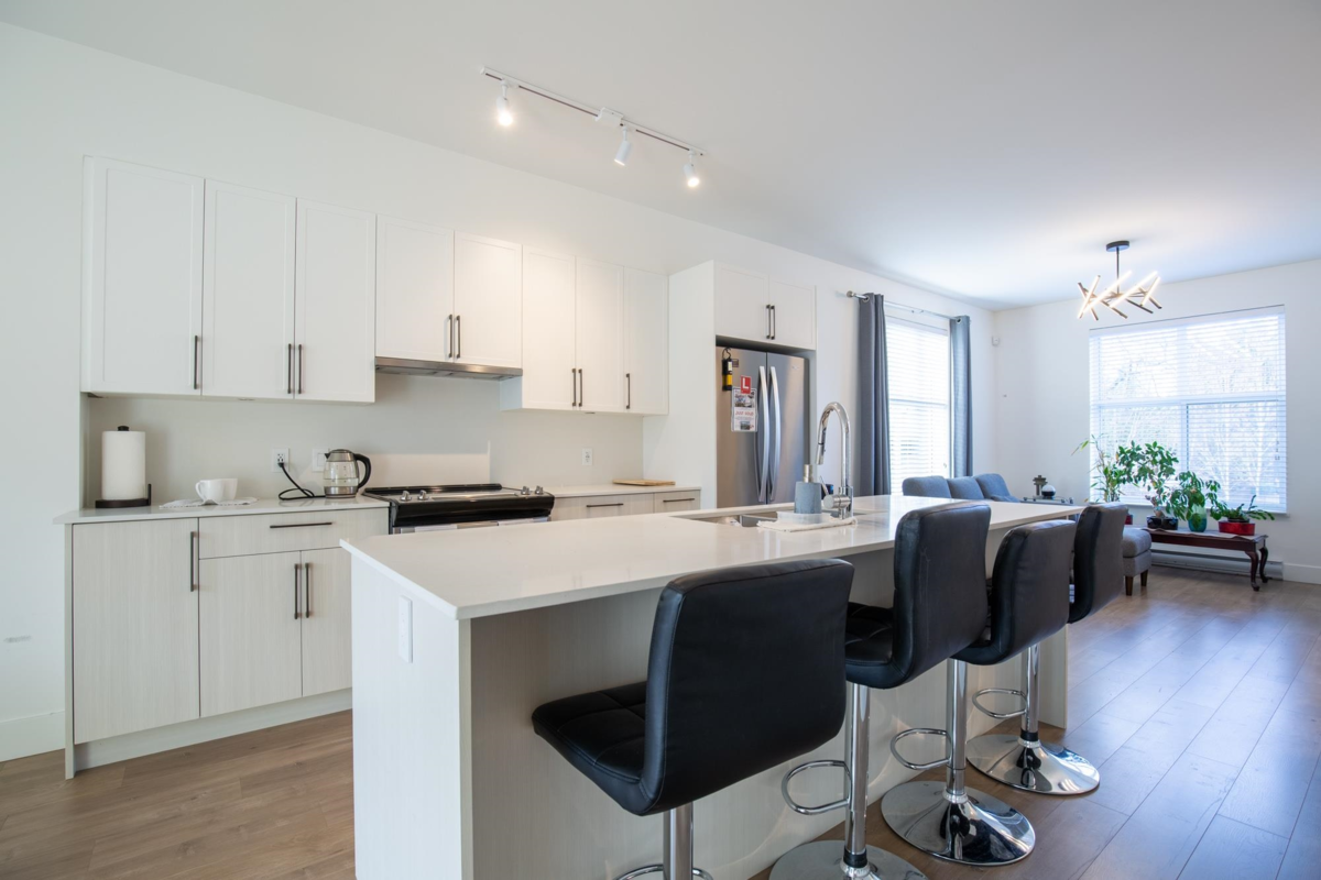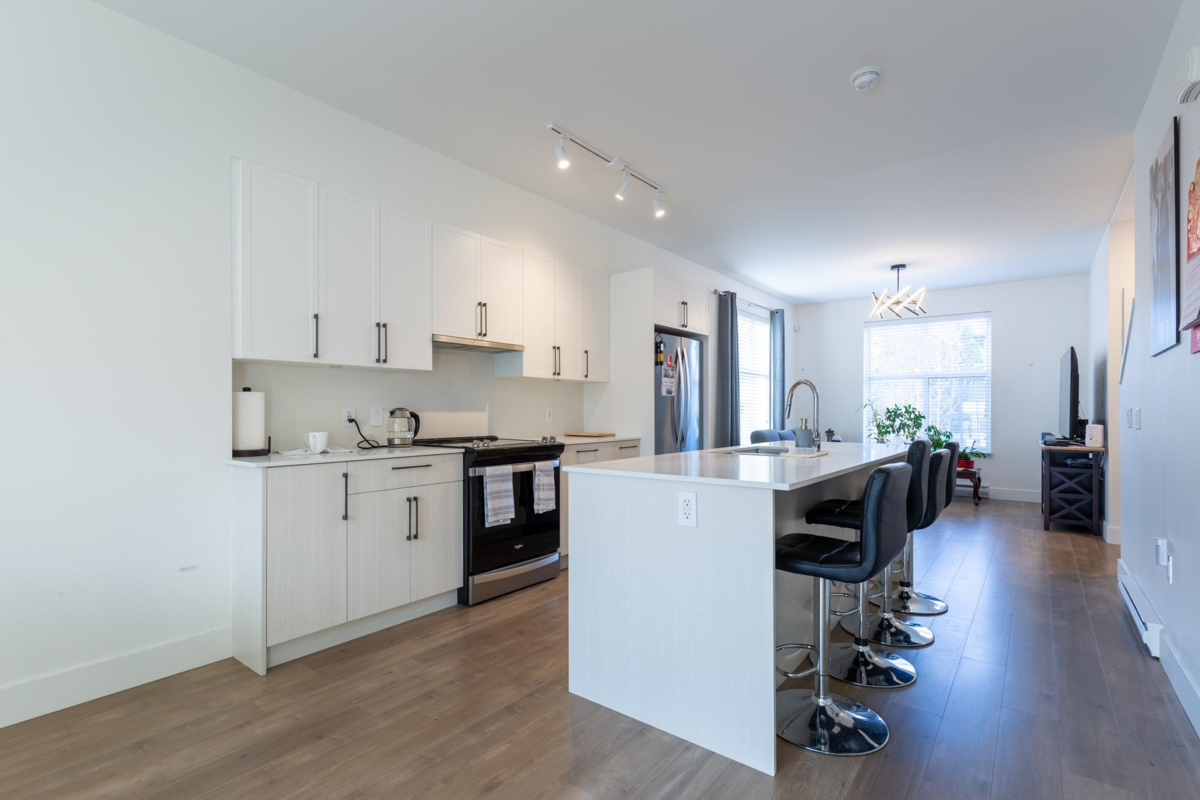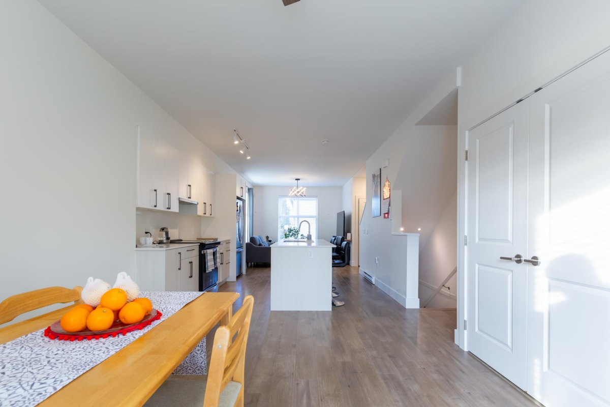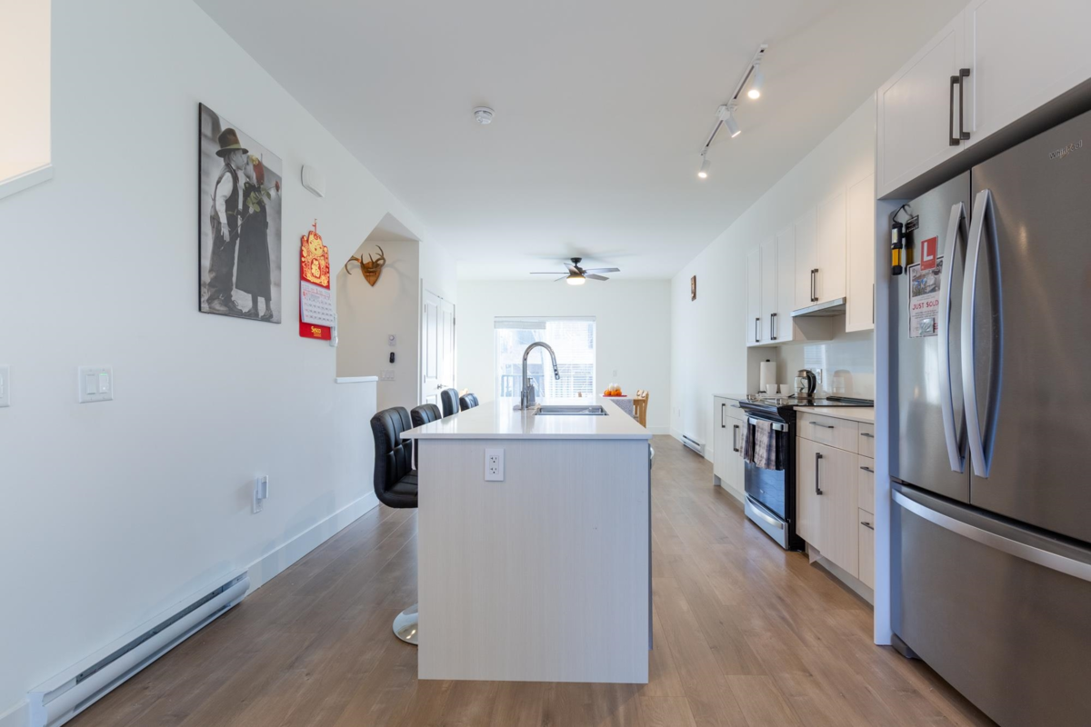 Just steps from historic downtown Abbotsford, this beautiful, three-year-old, corner-unit townhome by Keystone features three bedrooms, three bathrooms, and a spacious layout. Enjoy your own tandem garage with a proxy floor, plus a bonus personal driveway parking spot, and the largest corner yard in the complex. Visitor parking spots are super close to the unit. With quality finishes and beautiful landscaping, this south-facing home blends modern comfort and classic charm. Don’t miss out—call today for a viewing