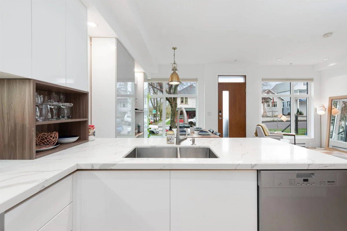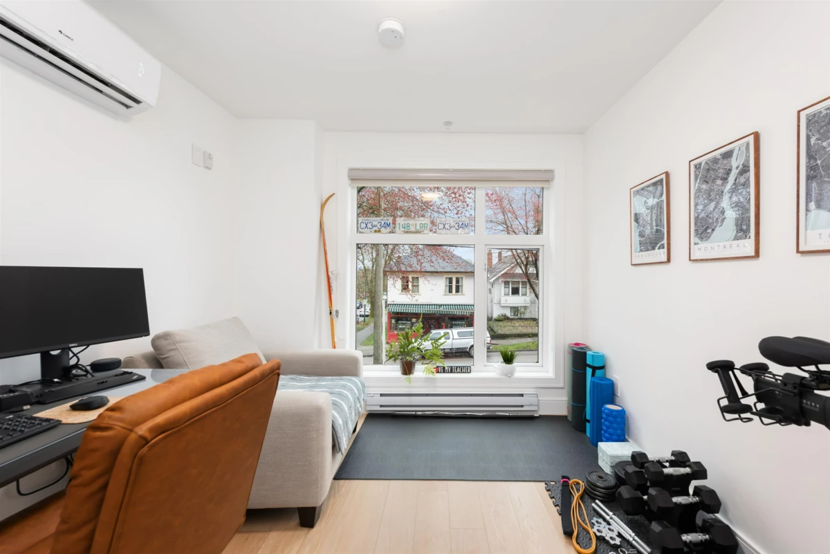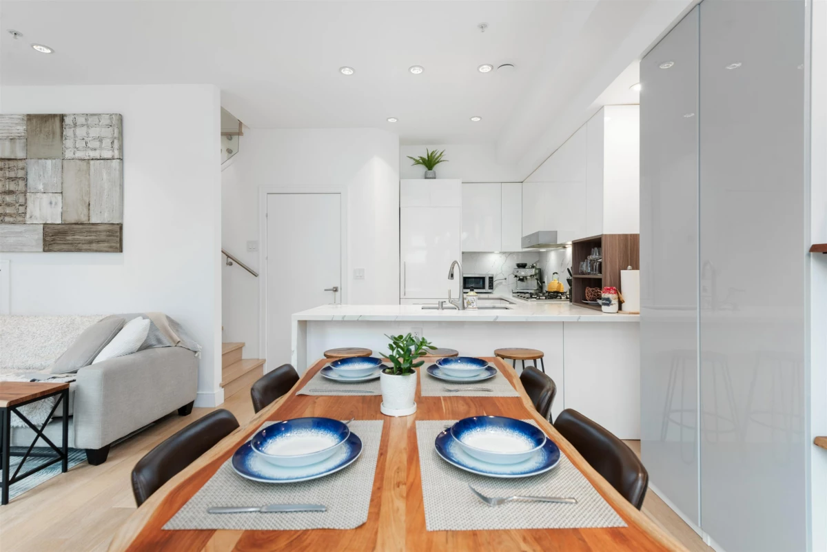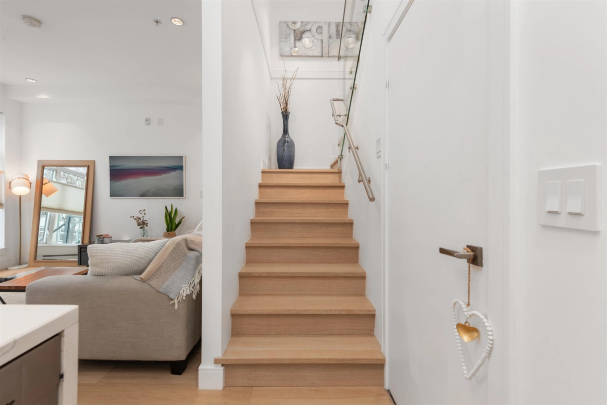 Step into a world of elegance with this 3 BR, 3 Bath townhome, mere steps from the heart of Commercial Drive. Tucked on a peaceful section of Victoria Dr, this residence shines with impressive finishes: oak plank flooring, quartz counters, integrated Miele appliances, A/C, and spa-like baths. The main level provides an open concept with over-height ceilings & ample natural light. The 2nd level houses two bedrooms & laundry, while the 3rd has a spacious primary suite, huge walk-in closet, marble walk-in shower with rain head, & private retreat deck with lovely mountain views. Built in 2019, this well-run complex includes parking & storage. Incredible location - walk to everything! Parks, cafes, shops and transit. Sneak Peek Thurs 5:30-6:30. Open Houses Sat/Sun Jan 31st & Feb 1st 2-4pm.
