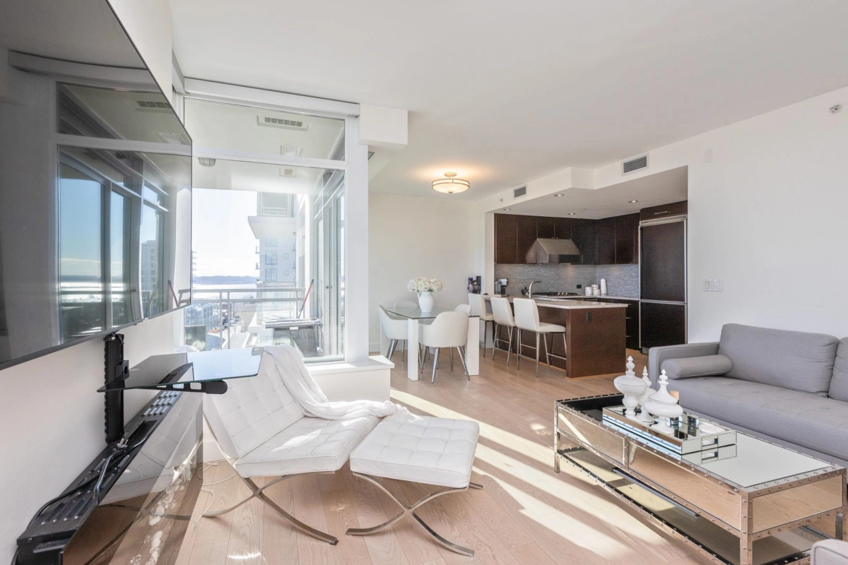 Welcome to your beautifully renovated corner unit in the desirable Miramar, located in the heart of sunny White Rock. Offering exceptional living with breathtaking ocean and mountain views, this spacious 2 bed, 2 bath home features two private decks perfect for soaking in the serene Semiahmoo Bay and surrounding landscapes. The open concept bright living space boasts engineered hardwood floors, fresh paint, and updated window blinds, creating a modern yet cozy atmosphere. The gourmet kitchen has been thoughtfully updated with newer countertops and a stylish backsplash. The main bedroom is a true retreat, offering ample space and a luxurious, upgraded spa-like en-suite bathroom. Nice large foyer between bedrooms. Walk to WR Beach and ample pubs and restaurants.