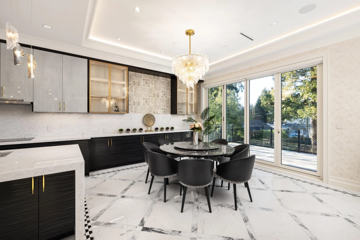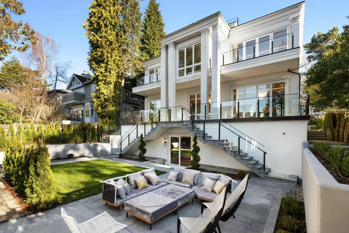 An exquisite residence located in the prestigious South Granville. This meticulously crafted home exemplifies a perfect blend of modern Italian luxury and timeless elegance. The innovative floor plan with an in-house elevator conveniently connects the bottom and the top enhancing accessibility. An individual 475 SQFT laneway house with its own parking. This elegant 6,308 SQFT European Italian-style featuring 7 beds 8 baths, the 4 levels home boasts a grand 14' high foyer with soaring ceilings. Open living areas seamlessly connect to a top-brand appliance-equipped Gaggenau kitchen, leading to a private garde, WET BAR, WINE CELLAR, HOME SMART SYSTEM, RADIANT HEAT, A/C, HRV. CLOSE TO MAGEE SECONDARY, MAPLE GROVE ELEMENTARY, CROFTON, ST. GEORGE'S, YORK HOUSE & UBC.