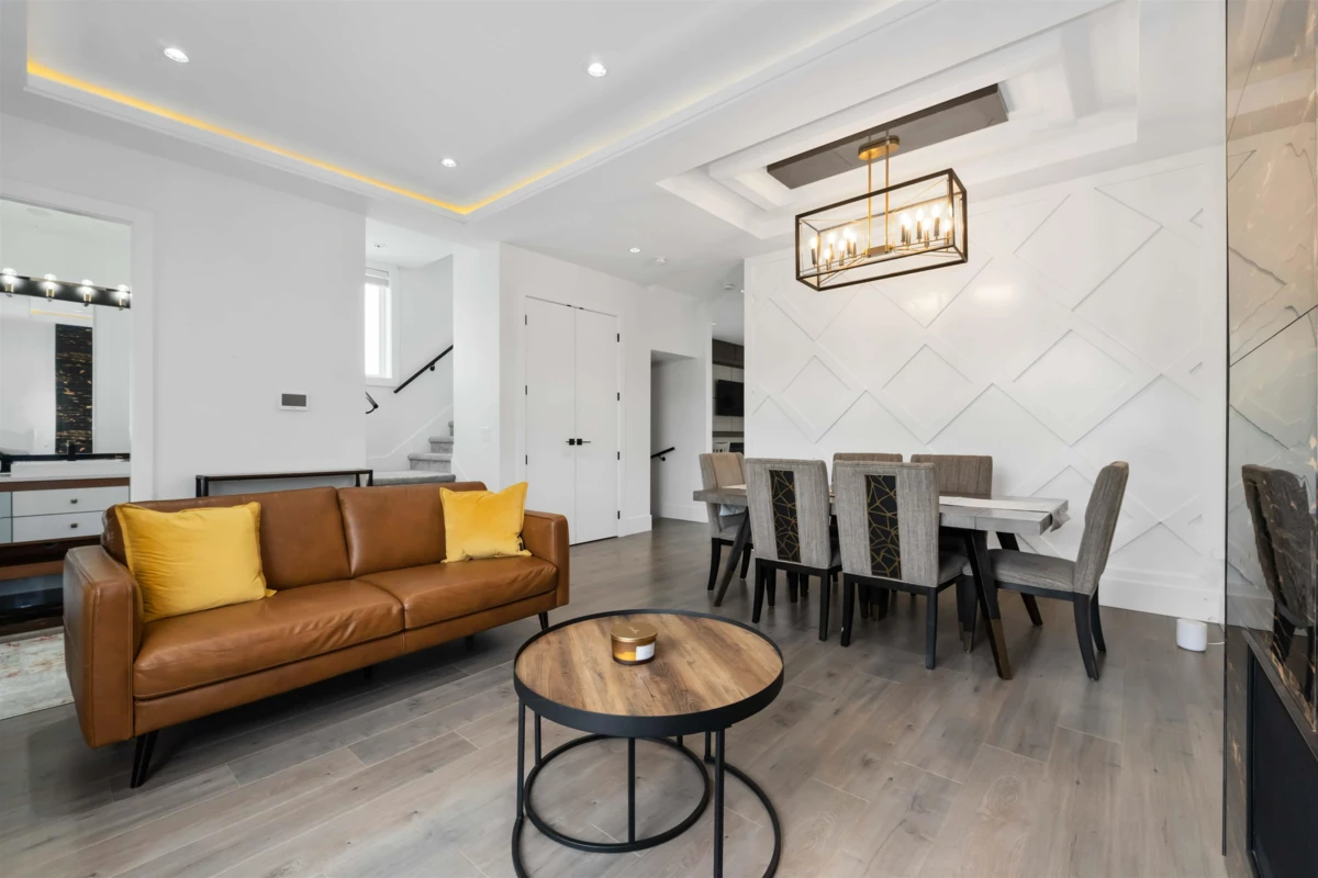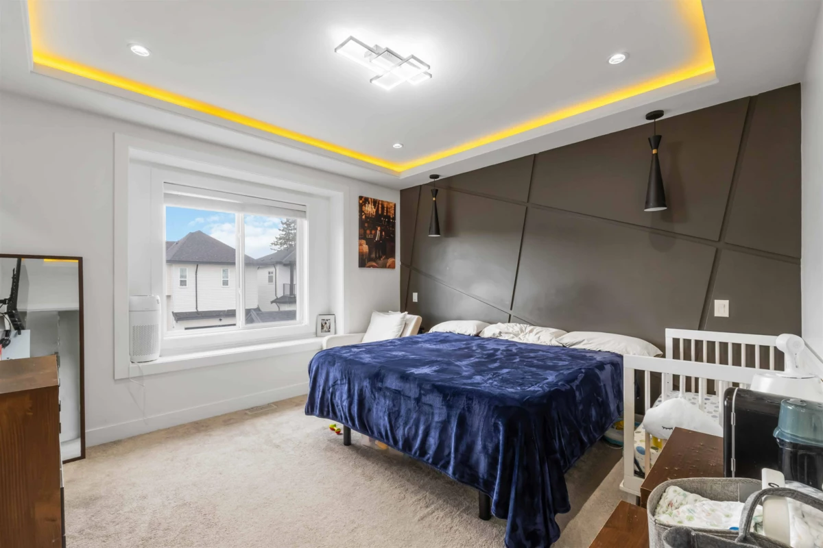 Built in 2021, this impressive 3-level Clayton home offers 6 bedrooms and 5 bathrooms with a bright, open layout. The gourmet kitchen includes a separate Wok Kitchen, perfect for both everyday meals and entertaining. High ceilings and oversized windows fill the space with natural light, while upgrades like gas and electric fireplaces, built-in vacuum, security system, and central A/C ensure year-round comfort. A legal suite with in-suite laundry provides excellent rental income potential. Facing onto a private greenbelt with no homes directly in front, this property offers rare privacy. Conveniently located near top schools, upcoming SkyTrain, major highways, and premier shopping. New home warranty 5 years remaining.