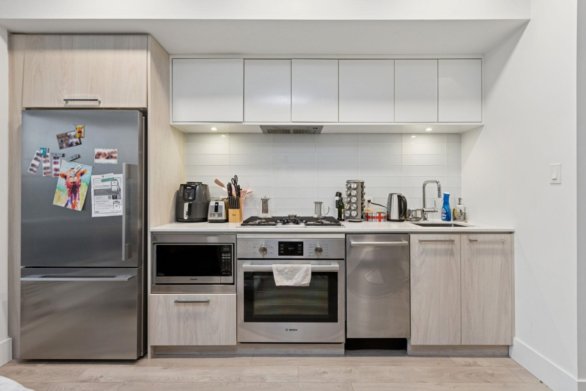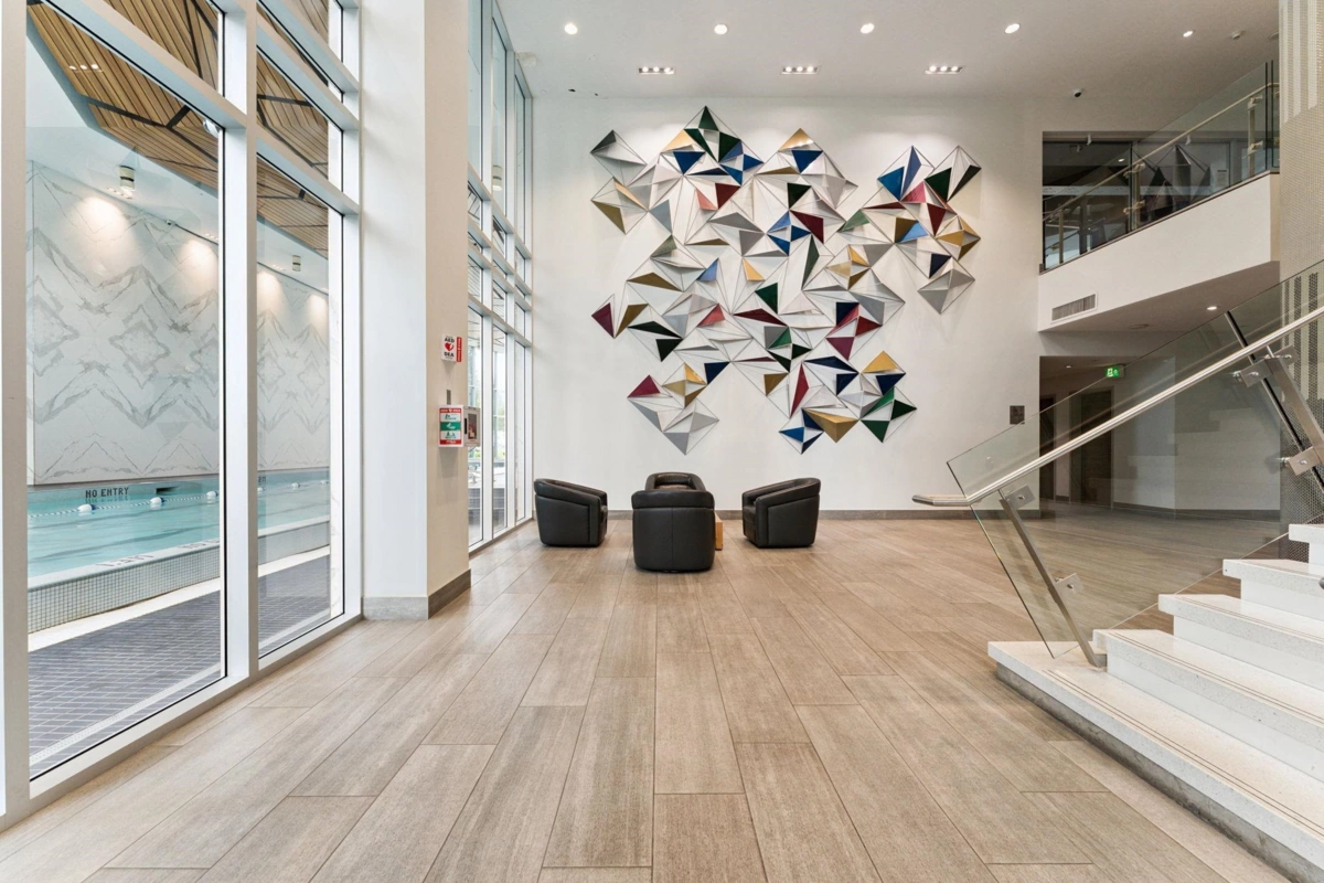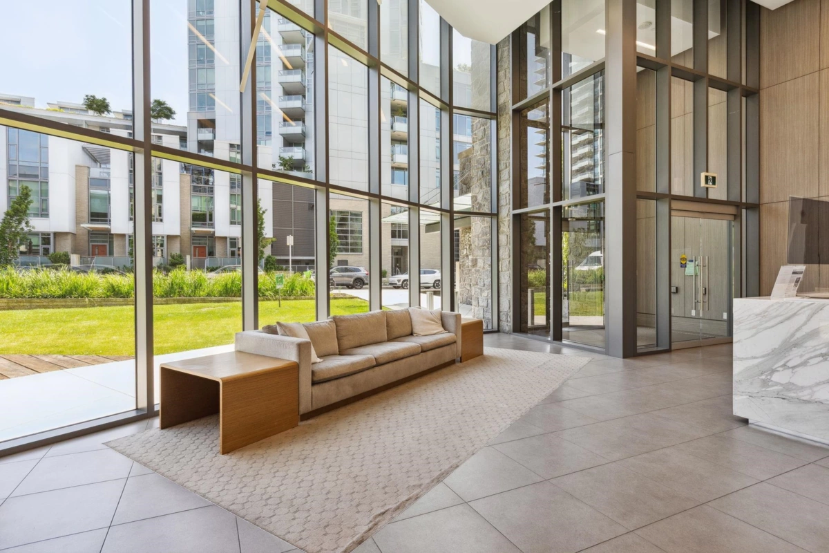 Welcome to COMPASS AT SEYLYNN VILLAGE, One of the North Vancouver's newest luxury complex! This stunning residence features a spacious balcony and floor-to-ceiling triple-ply windows. The bright west-facing studio is ideal for stylish living and entertaining, offering air conditioning, wide plank laminate flooring, high-end Bosch stainless steel appliances, Quartz countertops, and a gas range with a BBQ hookup. Enjoy fantastic amenities, including a party room with a full kitchen, concierge service, guest suite, visitor parking, bike storage, and a dog wash area. Plus, gain exclusive access to the Denna Club's impressive 14,000 sq. ft. amenity space.