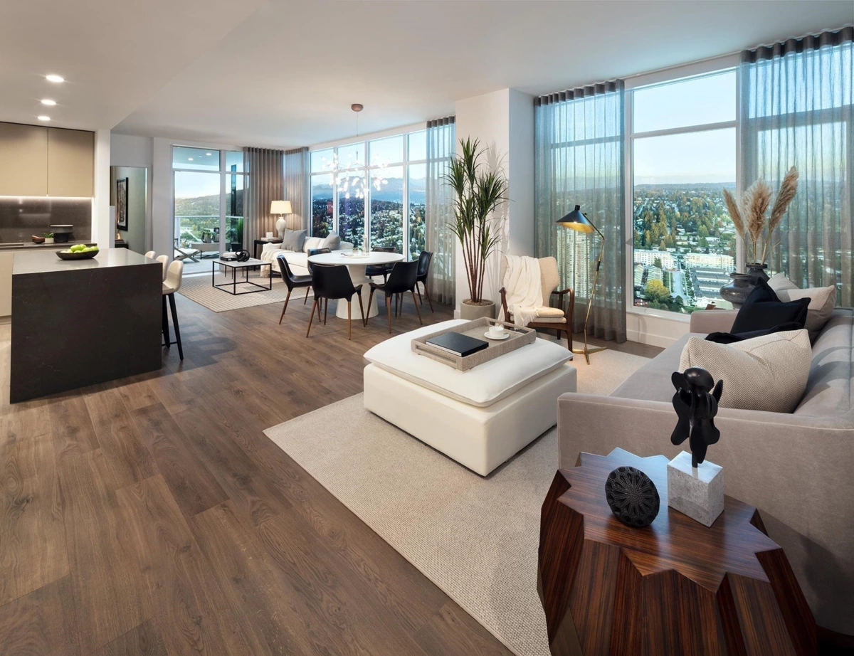 Welcome to Smith & Farrow by Boffo Developments — a new landmark community in the heart of Burquitlam. This beautifully designed 2-bedroom, 2-bathroom home features an exceptionally spacious living room with an open and efficient layout, offering a perfect balance of comfort and style. Built with Boffo’s signature quality craftsmanship, every detail reflects high-end finishing — from the premium built-in kitchen appliances and elegant cabinetry to the stone countertops and refined flooring. The expansive living area flows seamlessly into the kitchen, creating a bright and inviting atmosphere ideal for both relaxing and entertaining. Residents will enjoy an impressive collection of amenities, including a rooftop sky lounge, outdoor pool, hot tub, fitness centre, and guest suites. Convenie