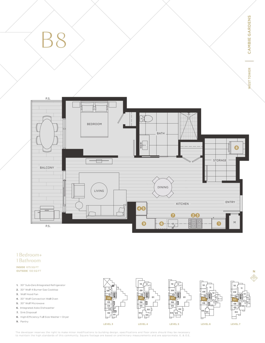 This West facing 690 SF One bedroom home is located at Cambie Gardens, Onni Group's masterplanned community on Vancouver's westside. Lavishly finished w/ engineered HW flooring in bedrooms, heating & cooling system, automated lighting & sleek roller shades. A gourmet kitchen includes natural stone countertops, oversize waterfall island & premium Sub Zero + Wolf appliance package. Spa-inspired bathrooms boast marble countertops, Nuheat flooring & oversized mirrors w/ LED lighting. Bedrooms showcase walk-in-closets. Parking included.