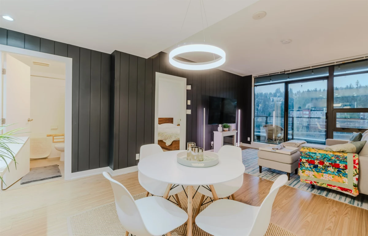 Median Household Income near this dwelling with the address 708 301 Capilano Road, Port moody, BC is $82409 which is Above Average in comparison with the British Columbia average. Median personal income near this dwelling with listing - MLS® R2980060 is $48533 which is High in comparison with the BC average. % of the Households with a mortgage in this census subdivision is 77.7% which is High.
