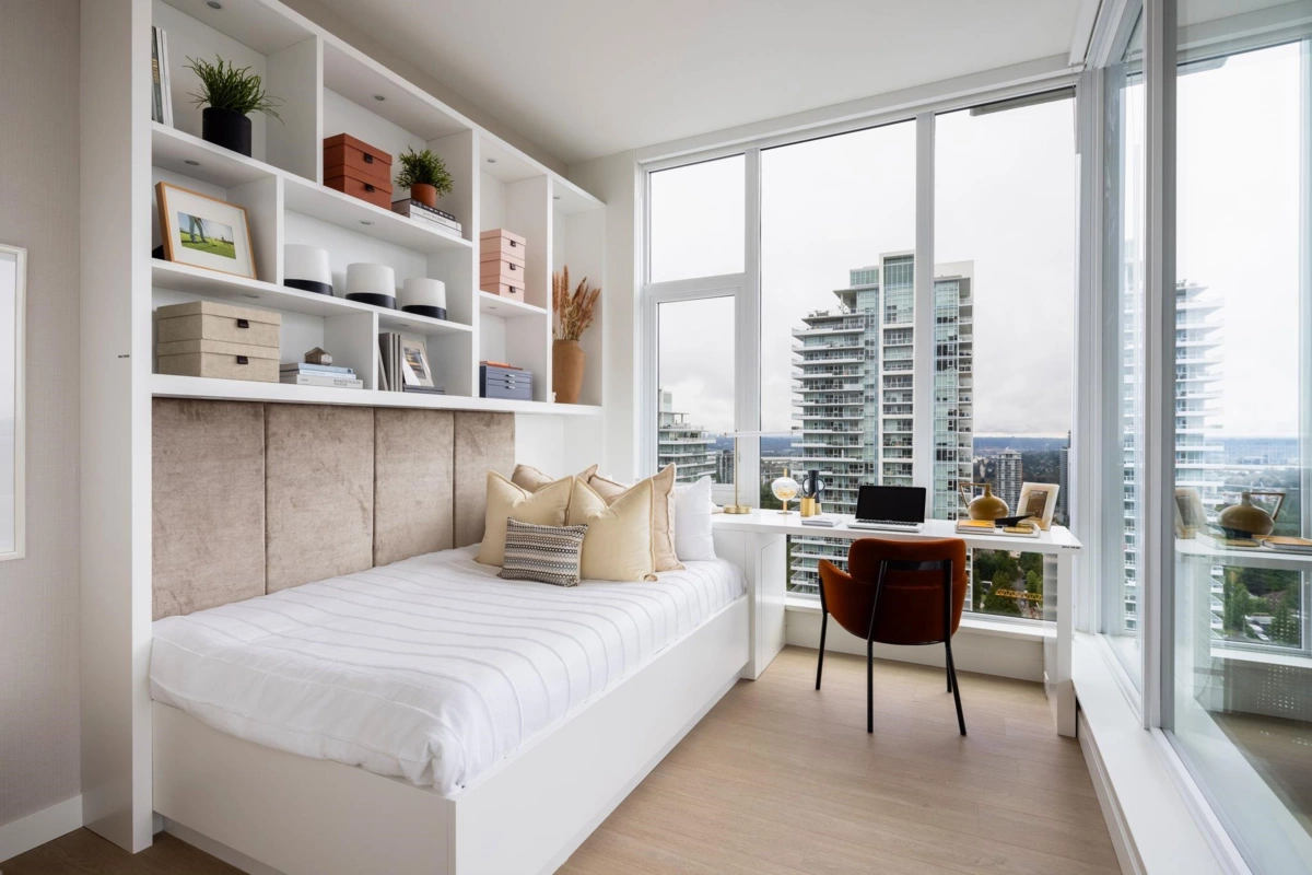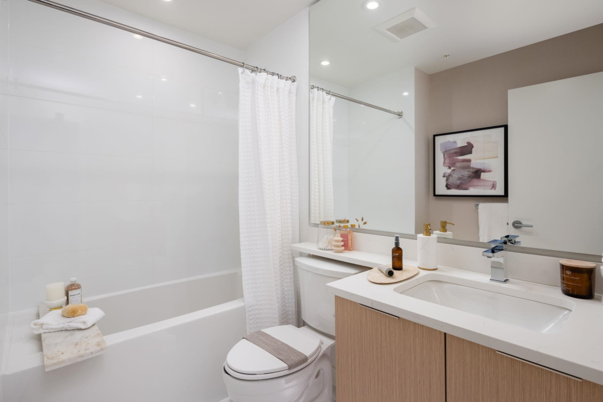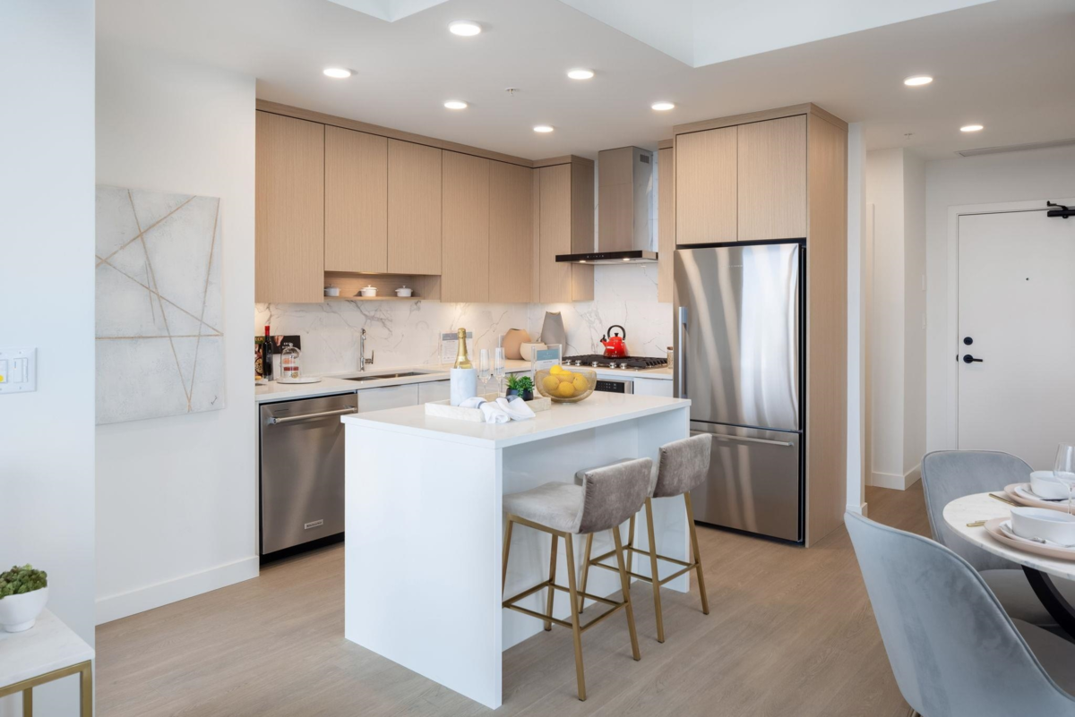 Truly one of a kind, this 2-bedroom home redefines indoor-outdoor living with a massive private terrace-perfect for entertaining, gardening, or simply relaxing. With a southwest exposure, this terrace gets optimal sun and is perfect for taking in the sunset light. This suite is a rare opportunity for downsizers who don't want to compromise on space. The open concept layout features a stunning kitchen with kitchen island looking out onto the main living space. The dining area easily accommodates a 6-seater table, while the living room includes a TV wall. The the secondary bedroom has direct access to the terrace and can flex as a guest room or office. The Sales Centre will be closed for the holidays from Dec 19 to Jan 3, open by appointment only. Book an appt with our Sales Team.