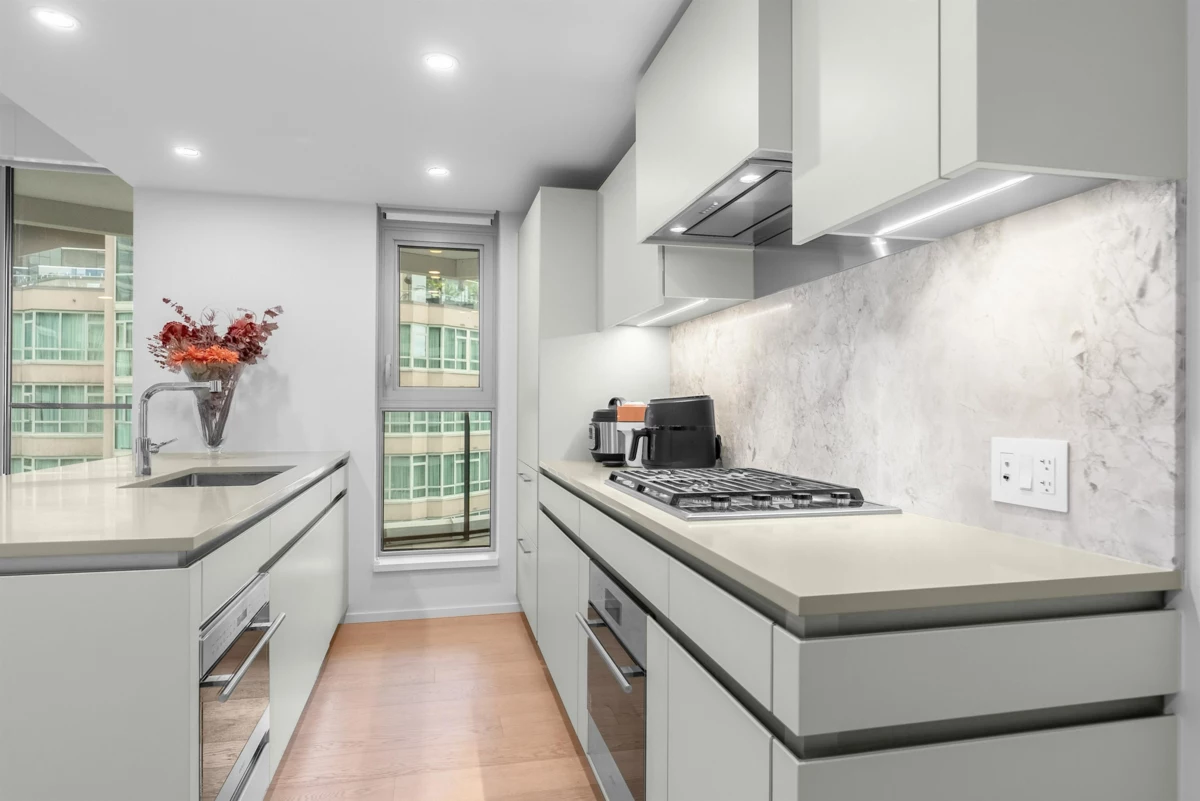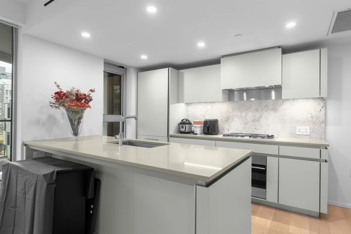 Experience refined urban living at The Pacific by Grosvenor in Downtown Vancouver. This functional 1-bedroom residence showcases a functional open-concept layout and a gourmet kitchen equipped with Wolf 30" gas cooktop and oven, Sub-Zero fridge, Italian Snaidero cabinetry, Miele dishwasher, marble backsplash, and quartz countertops. Floor-to-ceiling windows invite abundant natural light throughout. Enjoy world-class amenities including 24-hour concierge, state-of-the-art fitness centre, and a landscaped terrace with outdoor dining and kitchen.