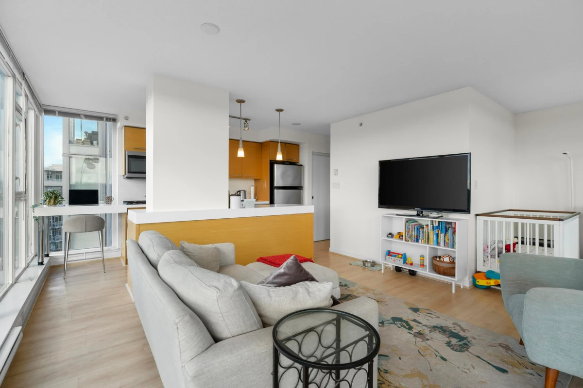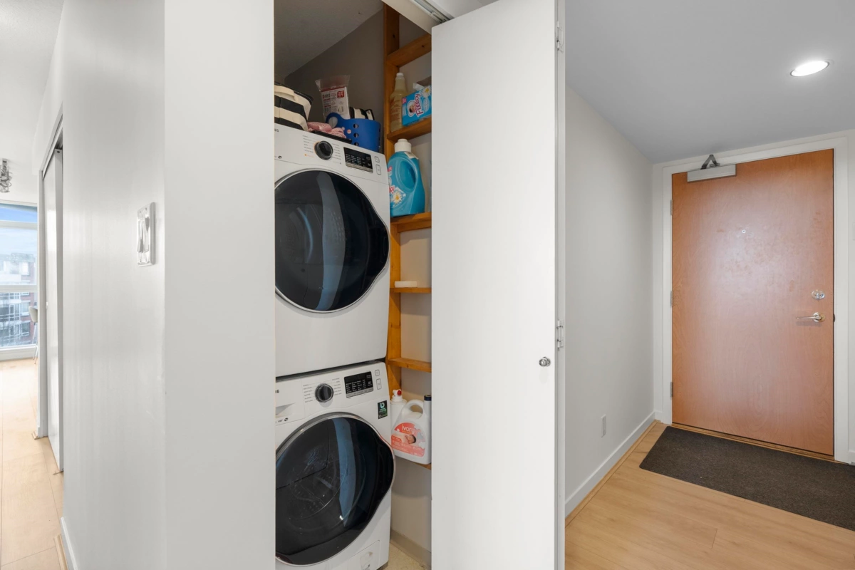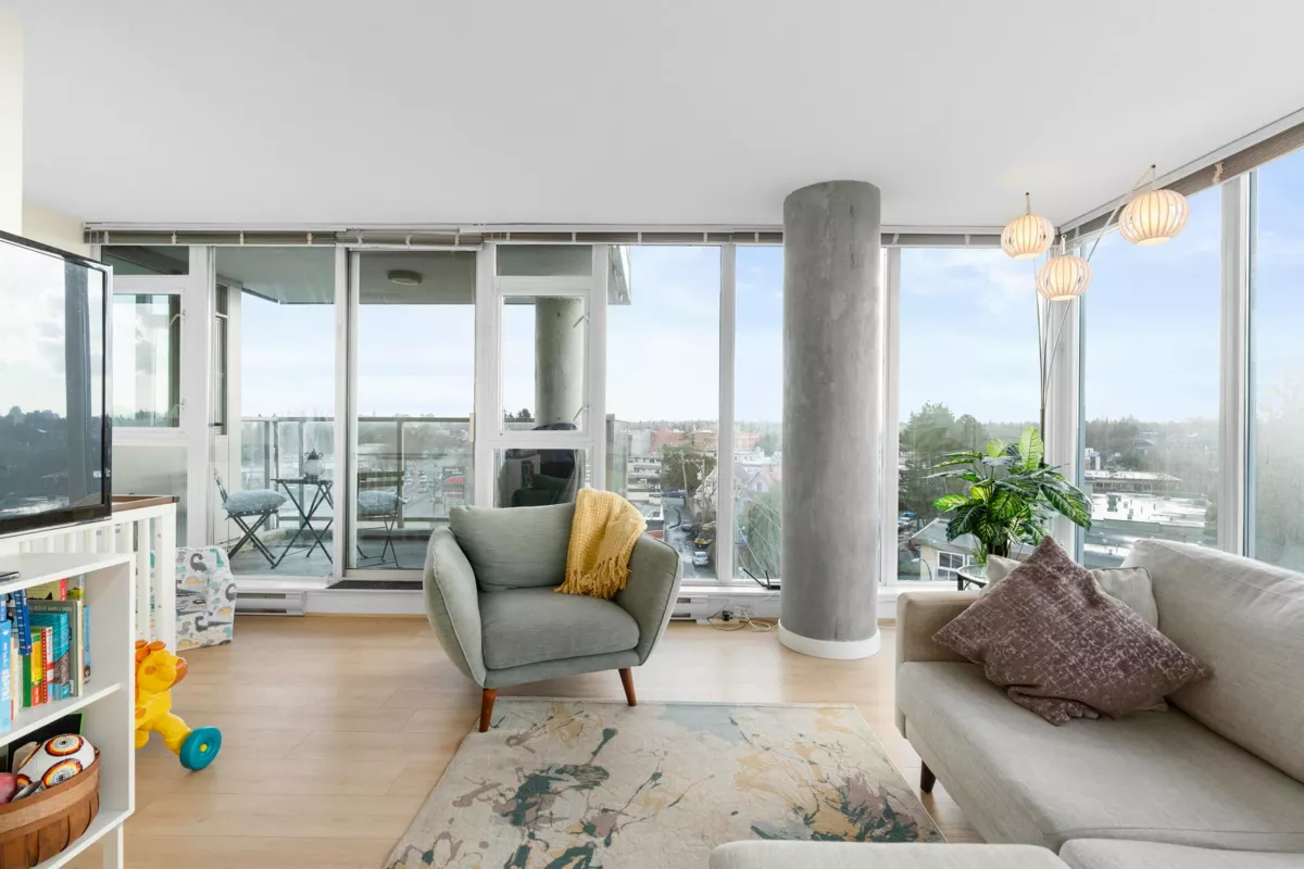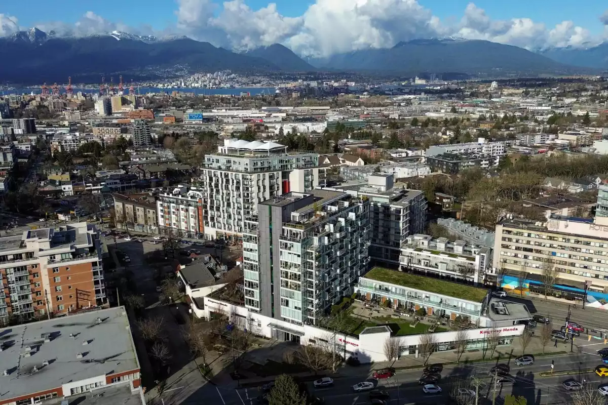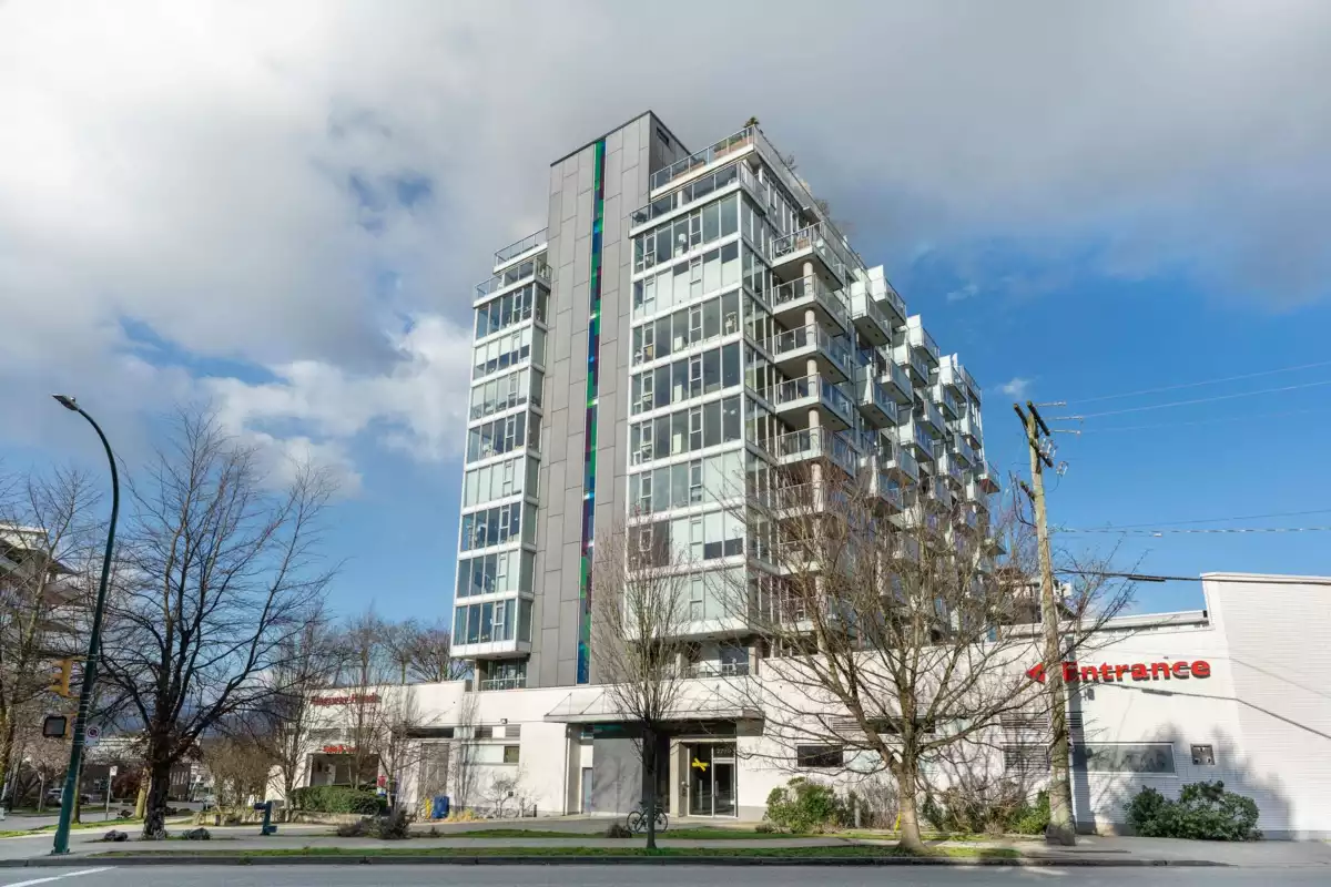 Bright 817 sq ft corner 1 bed + den in Mt. Pleasant with 180° views! Features floor-to-ceiling windows, Corian counters, large island & S/S appliances. Tons of storage, parking, gym & courtyard. Steps to shops, cafes, parks & transit in one of Vancouver’s most walkable, bike-friendly communities. Pet-friendly—2 pets up to 100 lbs welcome!