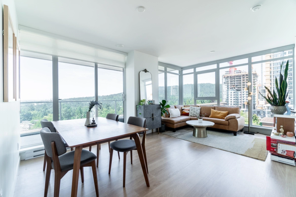 Lougheed Heights - Developed by award winning developer Bosa. This CORNER UNIT boasts breathtaking panoramic views from its 200 sq ft+ expansive balcony! With its NORTH facing exposure + floor to ceiling windows, an abundance of natural light enhances the space. This meticulous unit features an open concept & ideal layout, gourmet kitchen, S/S appliances, & a gas cooktop. Residents enjoy access to an unparalleled array of amenities, including a state-of-the-art gym, basketball court, outdoor pool, theatre room, library, music rooms, business center, BBQ patio, spacious party lounge, & entertaining games room — ensuring every lifestyle need is met. Conveniently situated within walking distance to Burquitlam Skytrain, & Lougheed Town Centre.