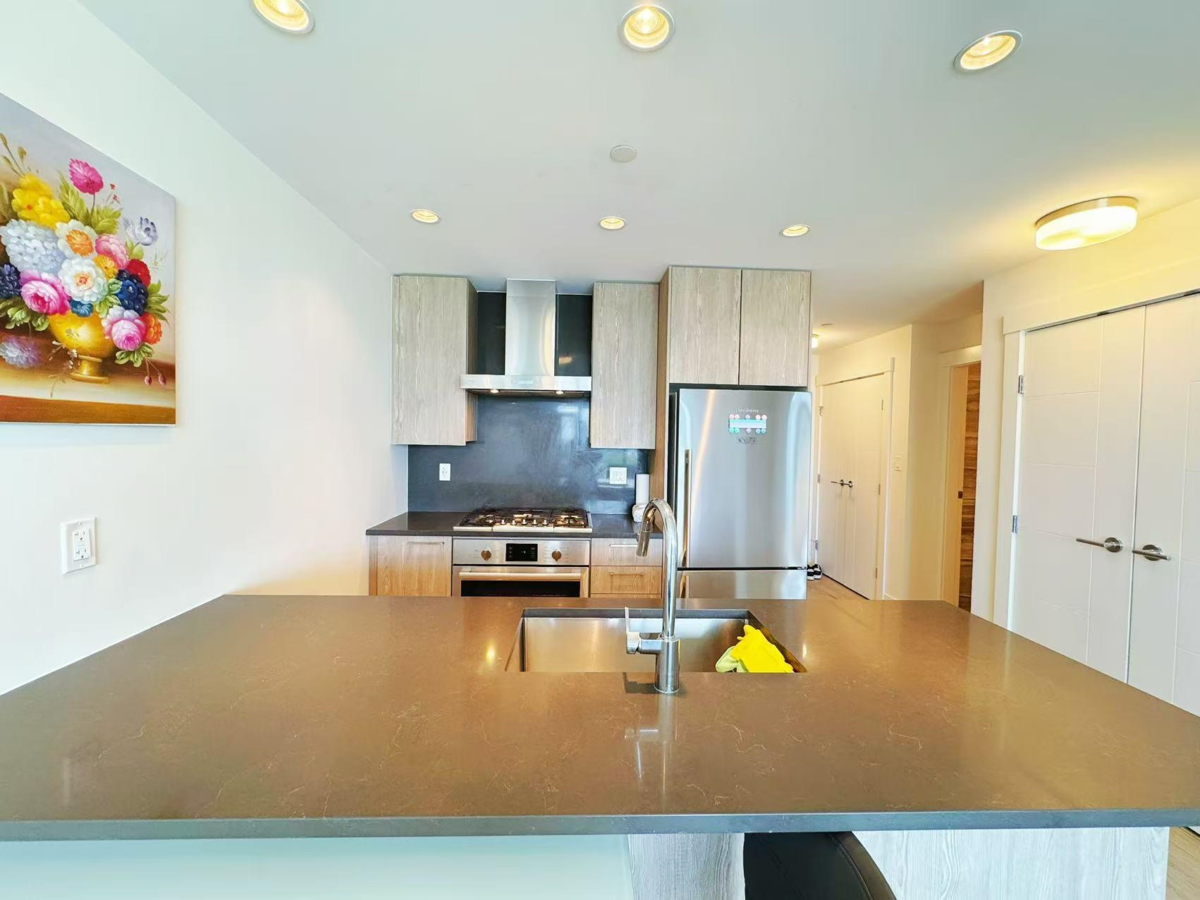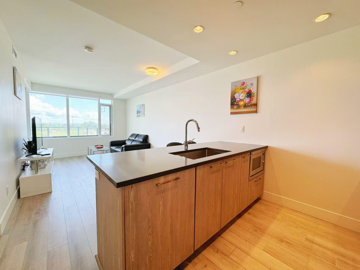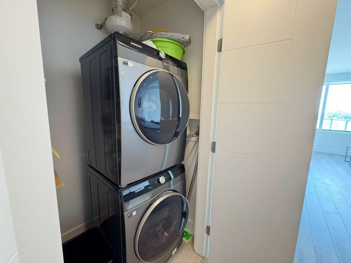 Welcome to The Gardens – CALLA! This modern concrete high-rise was completed in 2018 and is ideally situated at No. 5 Road and Steveston Highway in Richmond. This bright and well-maintained 1-bedroom + den, 1-bath home with NEW WASHER& DRYER, is located on the 7th floor with east-facing views overlooking open skies and mountain landscapes. Offering 651 sqft of well-designed living space, the unit features laminate hardwood flooring, stainless steel appliances, a gas cooktop, air conditioning, and 1 secure underground parking stall. Residents enjoy access to premium building amenities including a 6,000 sqft clubhouse with a full fitness centre, meeting room, and sports court. Unbeatable location—steps to Ironwood. OPEN HOUSE SUN DEC-07th 2-4PM VR: https://realsee.ai/ReZZk6gX