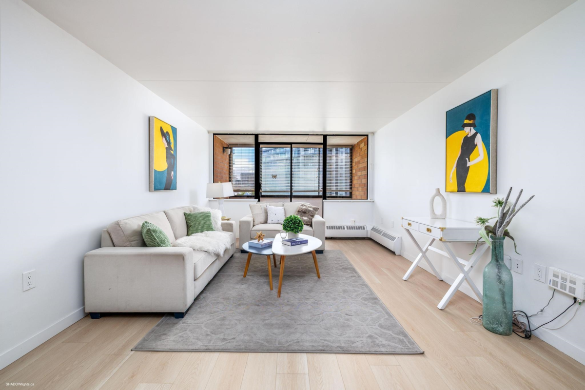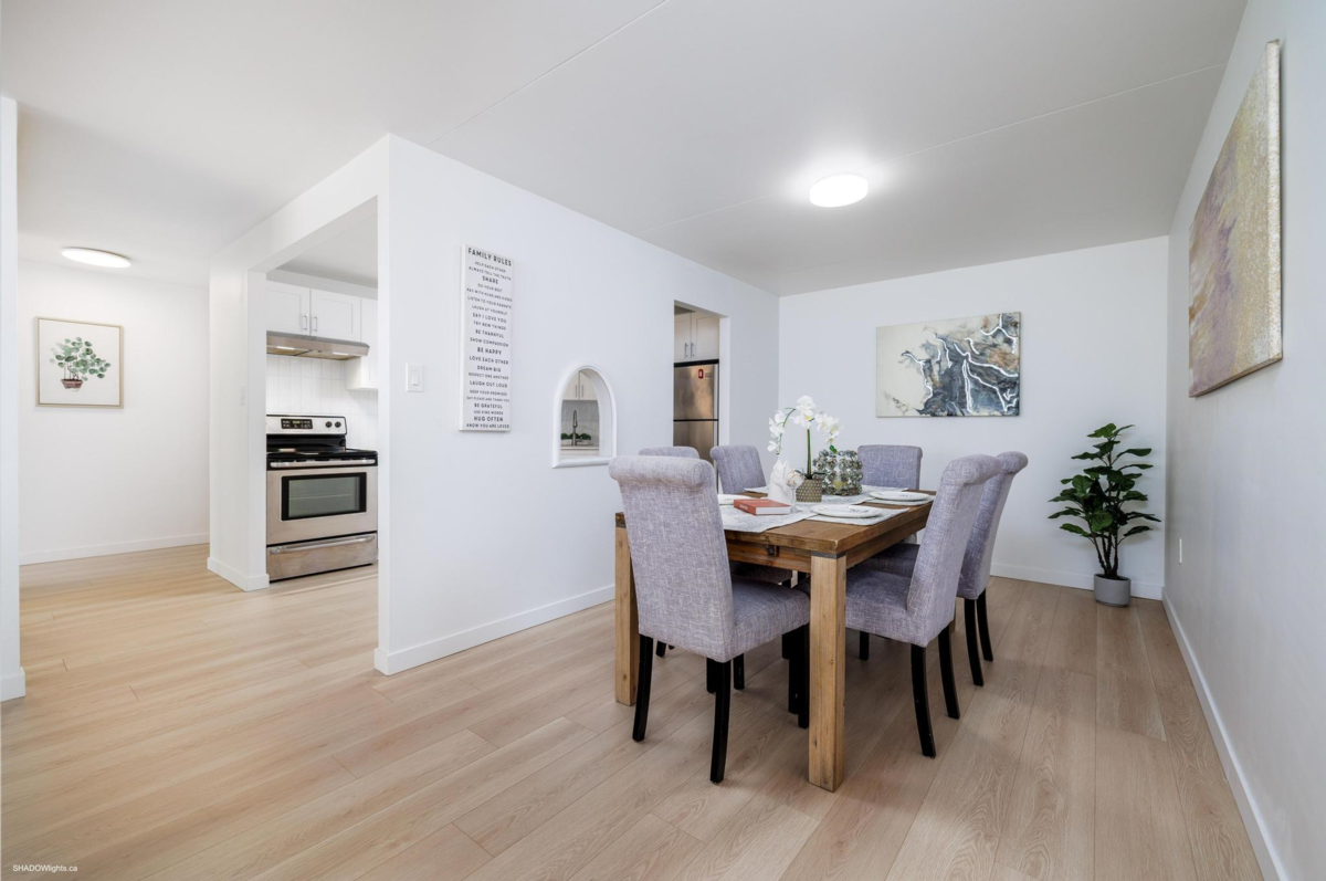 Refined Living in the Heart of Richmond! Fully renovated 2BR+2BATH residence offers 1134 sf of impeccably curated interiors in a concrete high-rise + a bright 64sf enclosed balcony that functions beautifully as a reading nook/studio/morning coffee retreat. East-facing and filled w/natural light, the home showcases over $62k in reno: engineered HW floors throughout/sleek quartz countertops/soft-close cabinetry/a contemporary tile backsplash/new vanities/fresh paint, and more. Open-concept dining & living area flows effortlessly, while both BR can accommodate king-sized beds w/ room to spare. Amenities include a serene outdoor pool/gym/ residents’ lounge, updated shared laundry facility. The strata fee covers heat + hot water + city water & sewer. Incl 1 covered parking & 1 storage locker.
