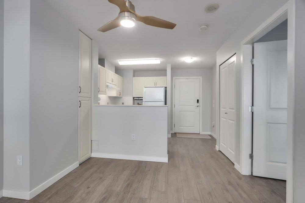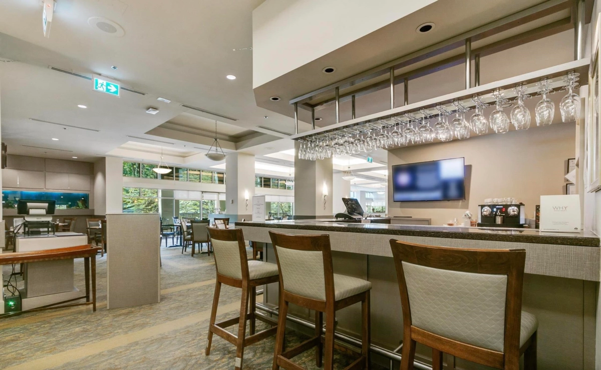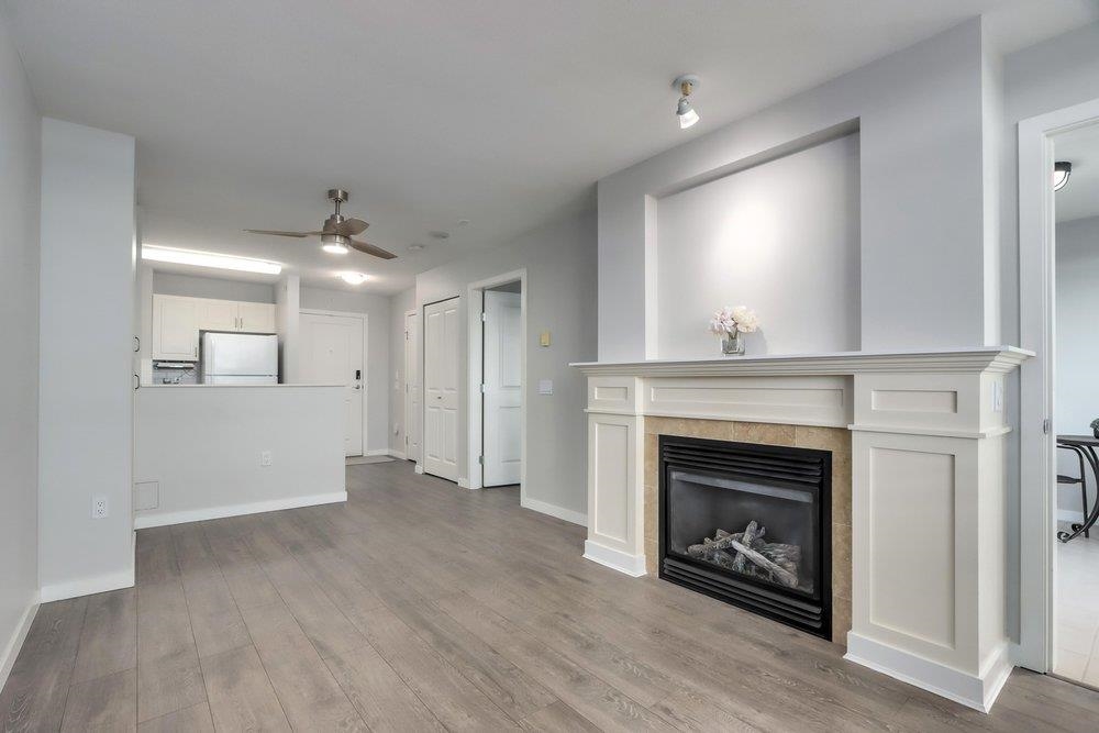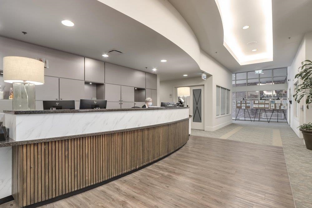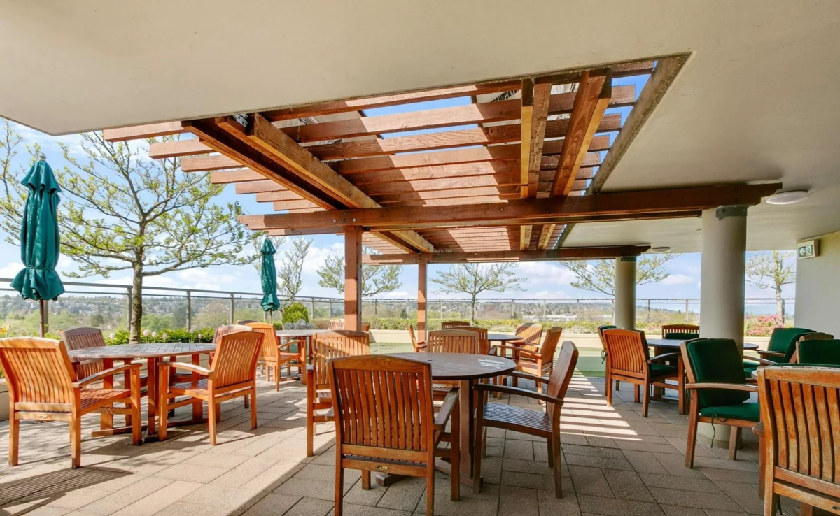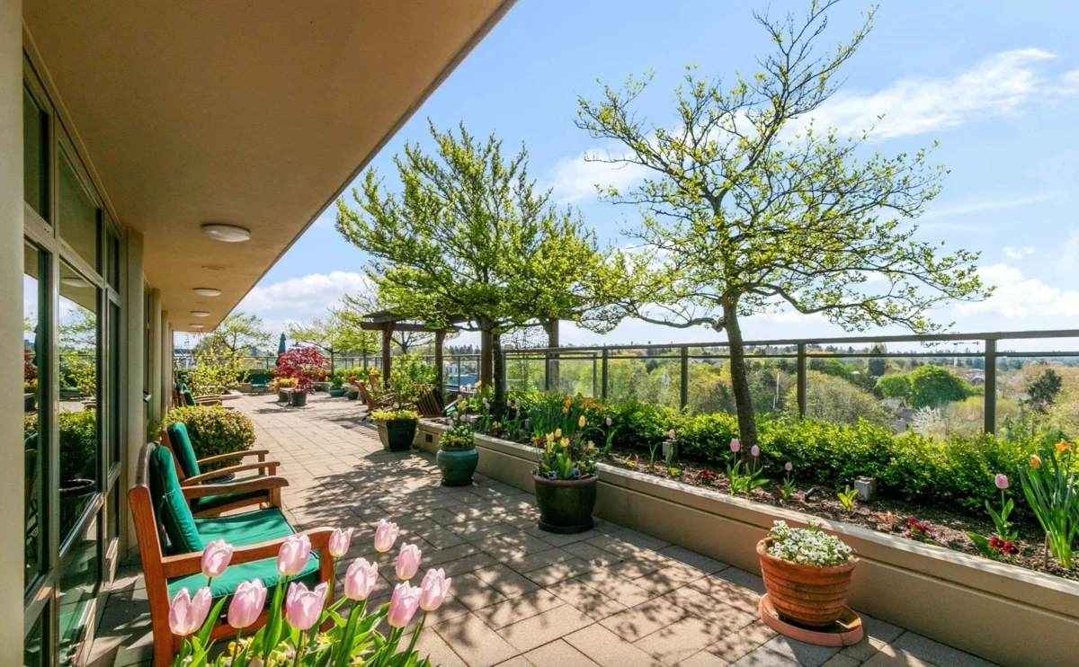 Fabulous Sub Penthouse at Season's, a 60+ building situated in the picturesque Arbutus Walk neighbourhood. Luxurious hotel-style amenities and services. This sub penthouse 1 bdrm & den with air conditioning boasts an eastern orientation with views of the mountains/trees. Enjoy the extensive fitness centre, rooftop garden terrace, and putting green. Notable features include a gas fireplace, newer flooring, additional pantry added, generous bedroom closet, a spacious bathroom with tub, in-suite washer/dryer, a storage locker, and parking. At Season's, relish gourmet dining, spa and salon services, housekeeping, a cinema, library, and the assistance of a concierge. Purchase subject to monthly service fee. Easy to view, please call for a private viewing and tour.