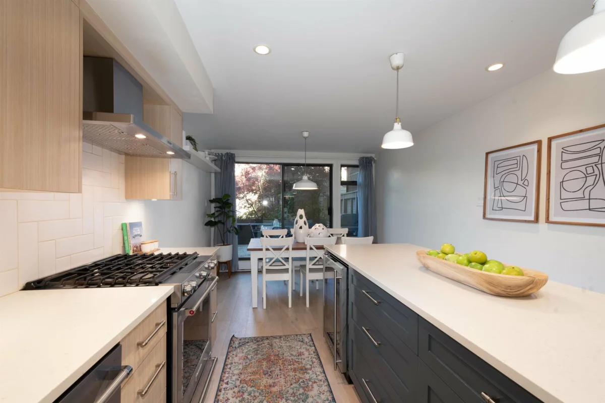 Move right into this exquisite townhome steps to the False Creek Seawall. Completely renovated to meet the modern living needs of a young family with a harmonious flow & elegant design. 365 square feet of outdoor living over two patios allowing you to take advantage of both morning & afternoon sun. Split level design with refined areas for kitchen & dining, grand living, private primary bedroom with its own ensuite & two bedrooms with a full bathroom. Secured parking, walk-in storage locker plus a crawl space that offers an additional 383 square feet of storage. Creek Village is a well maintained 56 unit complex with significant upgrades including windows, building envelope, waterproofing membranes & metal roofs. An incomparable offering & location to elevate your lifestyle. Call now!