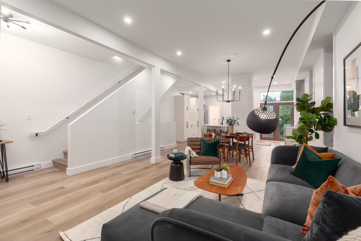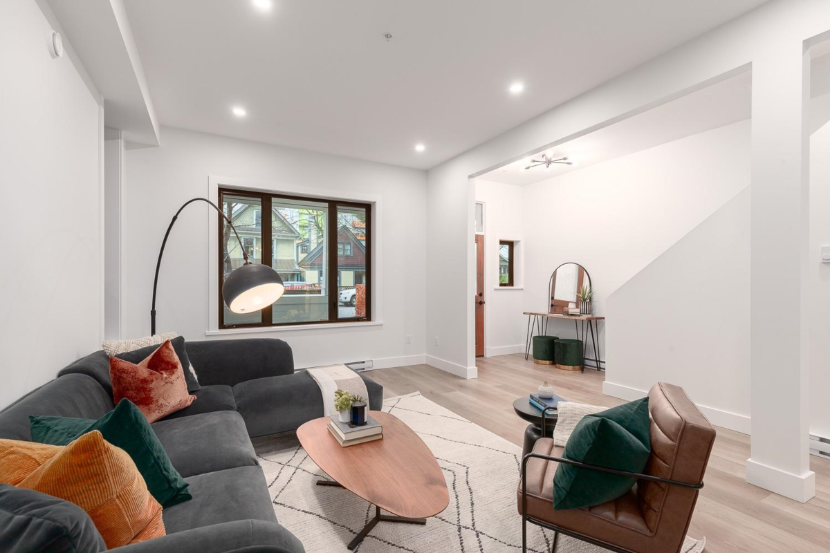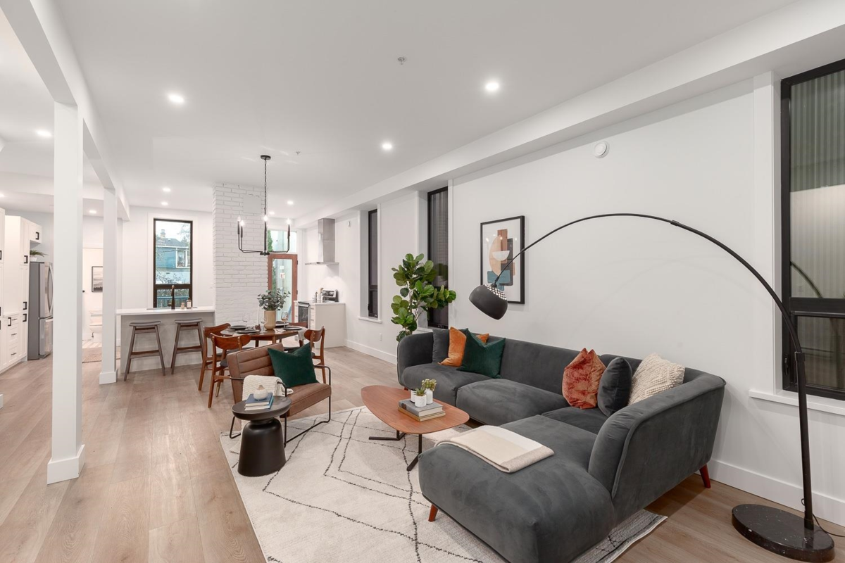 Discover this beautifully reimagined 5-bedroom/3-bathroom home in the vibrant Strathcona neighbourhood. The main floor’s open design invites creativity, perfect for hosting lively gatherings or quiet family evenings. The expansive kitchen offers island seating, stainless steel appliances, and ample cabinetry for storage. Upstairs, the primary bedroom and two additional bedrooms provide a serene retreat, complemented by a bathroom featuring a standalone tub and a walk-in shower. The lower level extends living possibilities with two bedrooms, a cozy family room, a full bathroom, and an office space. Step outside to a s-facing deck leading to a backyard haven. Nestled in one of Vancouver’s most eclectic communities, this home is a rare gem you don't want to miss out on.
