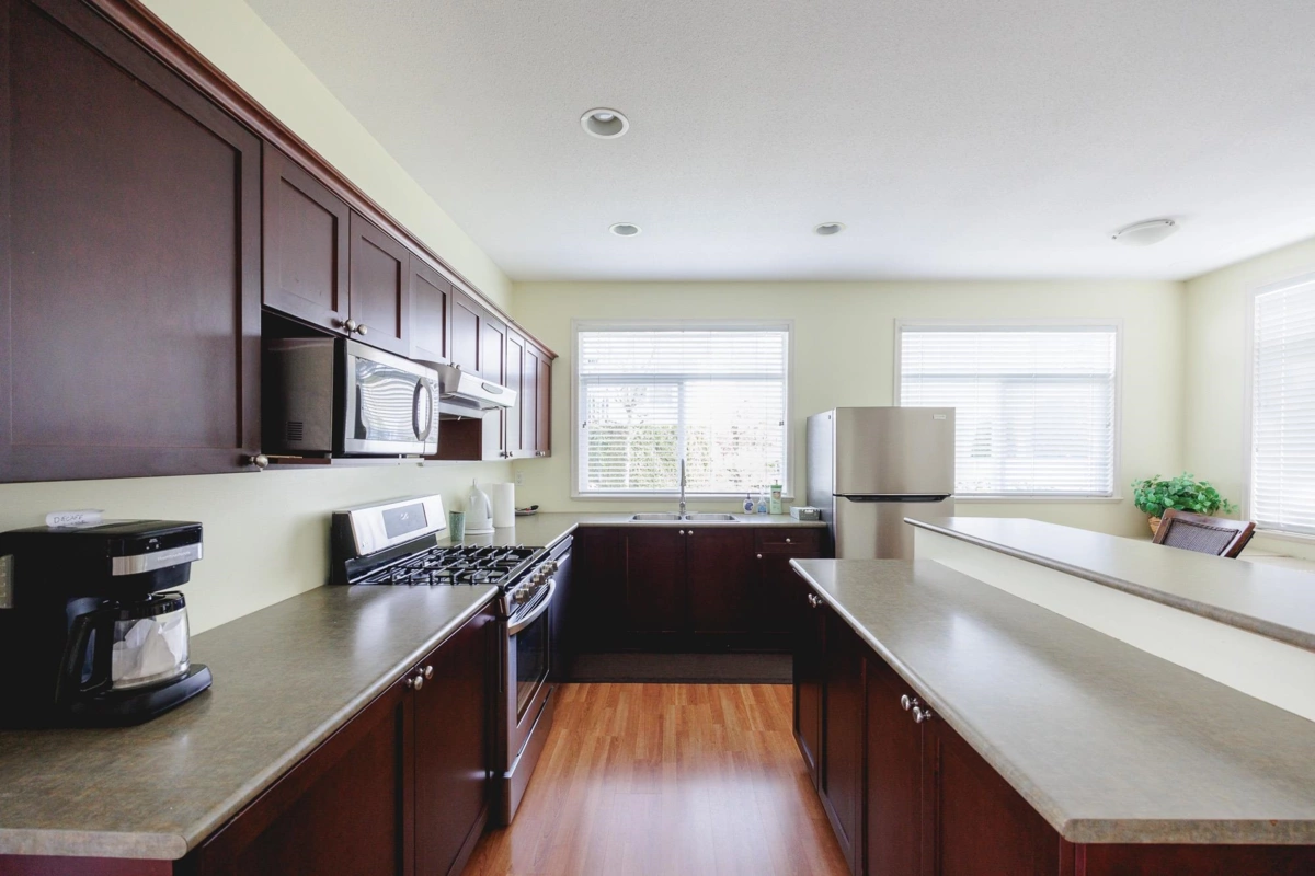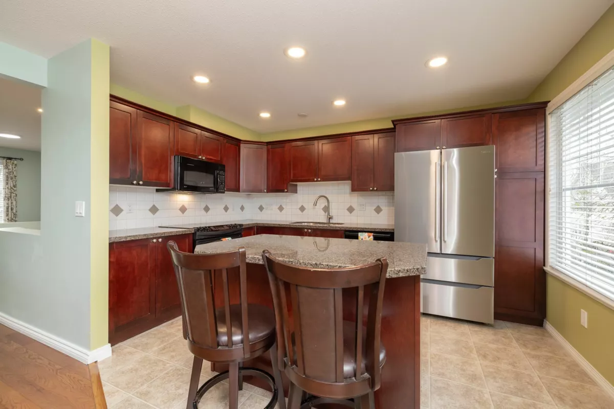 Welcome to The Lexington, a gated community offering an array of amenities, including a clubhouse & gym. Flooded with natural light from expansive windows, this well-maintained 4 bed, 4 bath townhome offers a bright & open atmosphere. The main level has the primary bedroom w/ ensuite & walk-in closet, an open kit, living rm & dining area w/ high vaulted ceiling & a cozy gas fireplace, plus a flex space (possible 5th bed). The ground level features a den, a spacious bed, a full bathroom & a large rec/living rm. The basement offers 2 additional beds, bathroom & extra unfinished space for extra storage. The double garage is a rare find, with enough rm to comfortably fit a full-size truck plus an additional car. Ideal location close to Cloverdale Athletic Park, schools, transit, parks & golf.