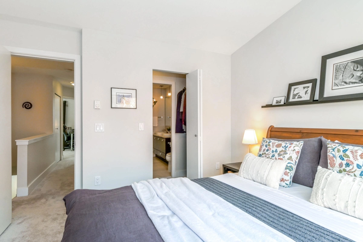 Welcome to SALUS, an award-winning, community built to BuiltGreen Gold certification standards for energy efficiency and eco-friendliness. Ideally located just minutes from public transit, shopping, & Watershed Park, with easy access to Hwy 99 & 91, this home is pristine & move-in ready with fresh paint throughout. Enjoy a functional layout with a powder room on the main, granite countertops, a large pantry, stainless steel appliances, & upgraded dishwasher. Features include new laminate & carpet flooring, porcelain tiles, an upgraded washer and dryer, and a tandem garage. Relax on the west-facing deck overlooking the clubhouse. The amenities include a heated outdoor pool, hot tub, spa rooms, infrared sauna, gym, yoga room, steam rooms, party lounge and a 3,500 sqft rooftop deck.