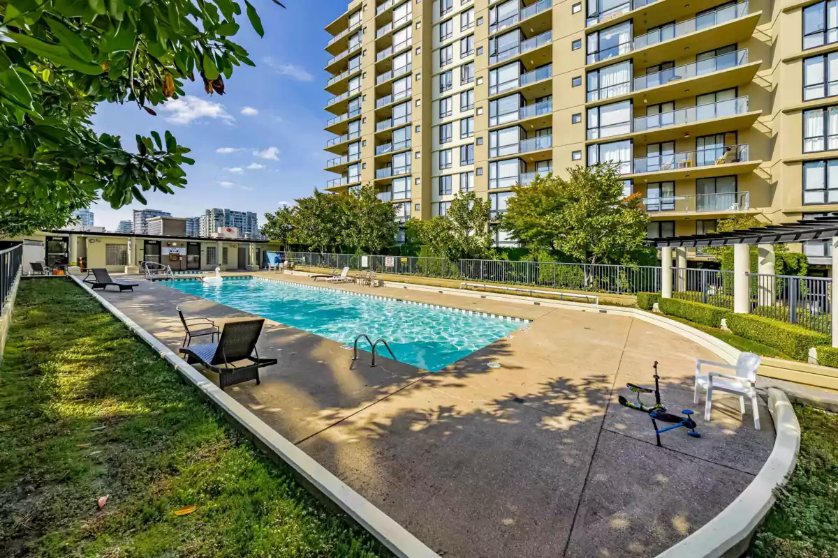 This roomy Richmond condo offers 872 square feet of living space, with 2 bedrooms and 2 bathrooms.The smart layout provides privacy by separating the bedrooms, and the master bedroom features a walk-in closet and a large bathroom. Amenities include a fitness center, steam/sauna room, outdoor pool, guest room, parking, and a storage locker. Conveniently located just across the Richmond Centre. Only 3-minute walk to Brighouse Skytrain Station and within walking distance to restaurants, shops and nearby parks.