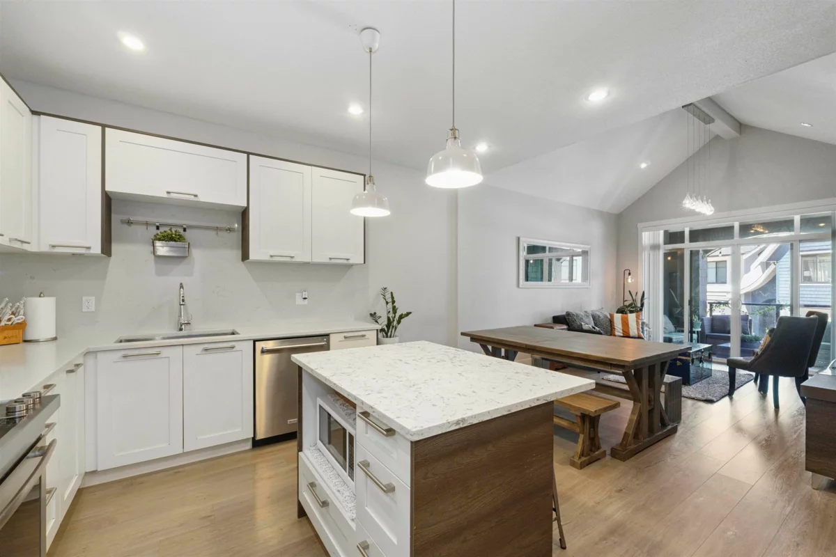 Stylish and spacious 4-bedroom, 3.5-bathroom townhome in sought-after Hyde Park, South Surrey. Backing onto peaceful greenspace, this 3-storey home features a vaulted-ceiling main living area, modern kitchen with granite countertops and stainless steel appliances, and a large balcony perfect for relaxing or entertaining. Easy maintenance with laminate floors throughout the home. Enter through your main floor where you will find a serene primary bedroom with a luxury ensuite and upgraded heated floors. Upstairs offers two bright bedrooms and a versatile loft/flex space. The basement features a rec room with wet bar, a fourth bedroom, full bath, and access to a private fenced patio and yard. Enjoy extensive amenities including green space, playground, media room & club house. Must see!