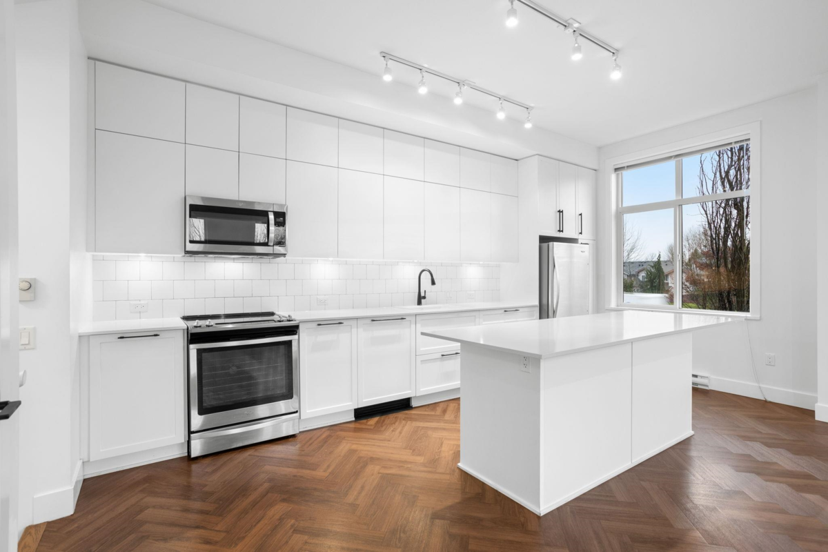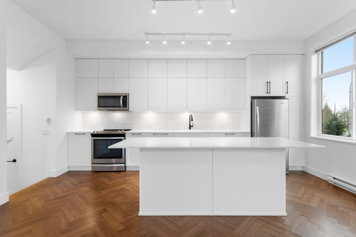 These rarely come available! Unique end unit Townhome located in the heart of historic downtown Cloverdale! With an open, lofty vibe & feel, this home features soaring 10’ ceilings, quartz counters, open concept floor plan, high-end S/S appliances, herringbone flooring, double car side by side garage, expansive windows and an abundance of natural light. Enjoy the convenience of living just steps to local shops, dining, recreation & future Skytrain.