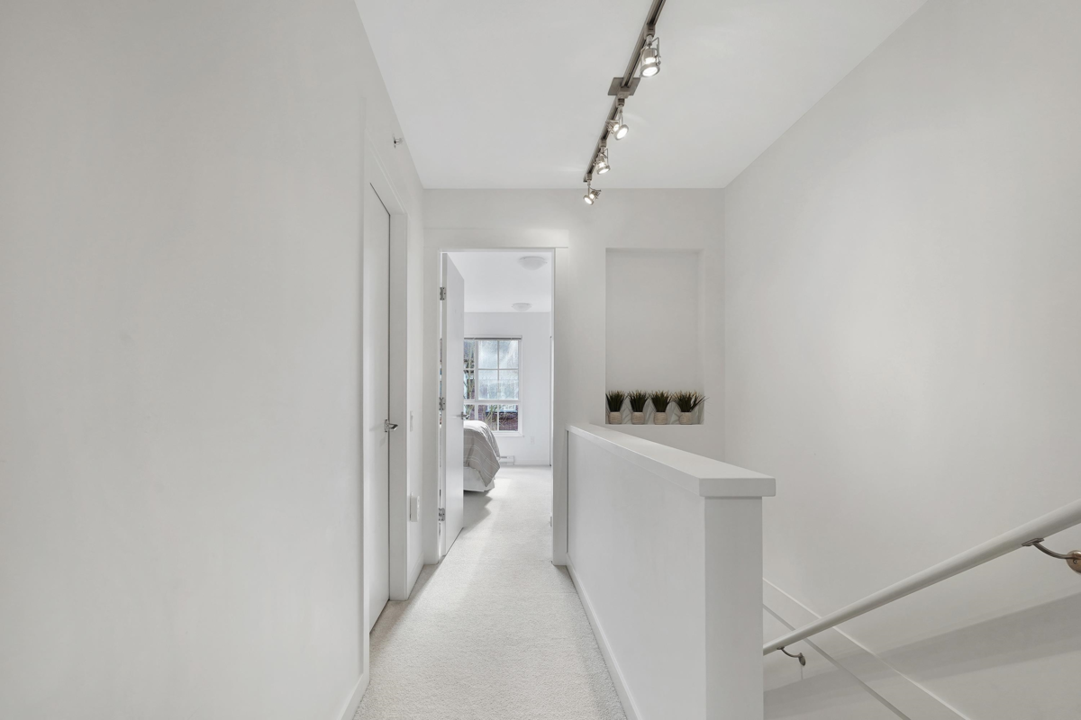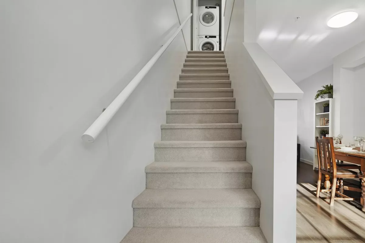 Experience modern living in this stylish 2 Bedroom + Den townhome, situated in a vibrant, walkable community. The entry-level features a bright flex room, perfect for a bedroom or home office, along with a full bathroom. The main level features an elegant, open-concept kitchen with updated appliances, a dining room, and a living room that opens to a spacious deck—ideal for entertaining. BBQs are also welcome. On the upper level, find two generously sized bedrooms, including a sunlit primary bedroom with a 5-piece ensuite bath. Conveniently situated just steps from shopping, dining, schools, the Carnoustie golf course and river trails, this home offers excellent accessibility. Recent updates fresh vinyl fencing and newly painted areas.