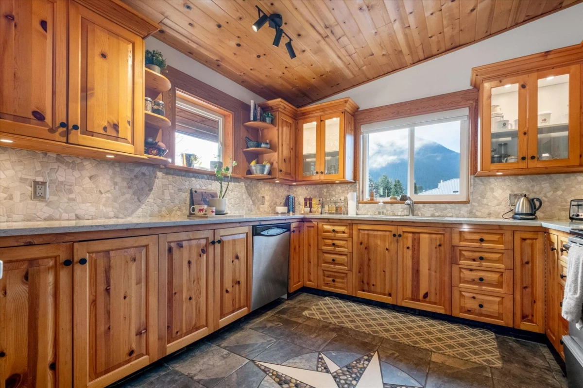 Sunshine, mountain views, and flexible living come together in this Pemberton home on a corner lot with mature trees and established landscaping. The open-concept living area is bright and welcoming, anchored by a cozy wood-burning stove, with some updates already completed. Three bedrooms on the main level flow onto a wrap-around deck for outdoor space and mountain views. The fully fenced backyard receives full sun, making it ideal for gardening, relaxing, and enjoying the hot tub. A double garage provides space for vehicles and gear, while a self-contained one-bedroom mortgage helper adds flexibility for rental income, guests, or extended family. With mountain views and a well-located corner lot, this property combines outdoor living, comfort, and versatility in Pemberdise.
