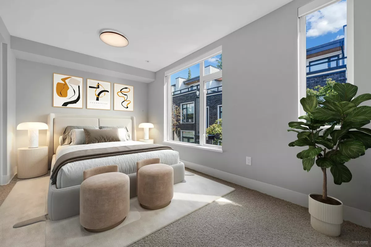 Welcome to your dream home in Van West! Step inside this modern, open-concept home and be greeted by an abundance of sunlight streaming through every window. Beautiful 3 bed + den, corner unit townhome with a view by INTRACORP! Features includes 9' high-ceiling; Unico heating/cooling system; Nest Smart home; wireless lighting/control. Living room opens onto a private patio ideal for BBQs/outdoor lounging. The generously sized bedrooms provide the perfect retreat, with master bed offering access to a rooftop patio with beautiful views of mountains, water, and greenery. Basement features a versatile room for playroom, office or den. Located SouthGranville just min. from Churchill Secondary School, Kerrisdale Village, Oakridge Centre, and easy access to Rmd, YVR! Open House Sat/Sun Dec 20-21,