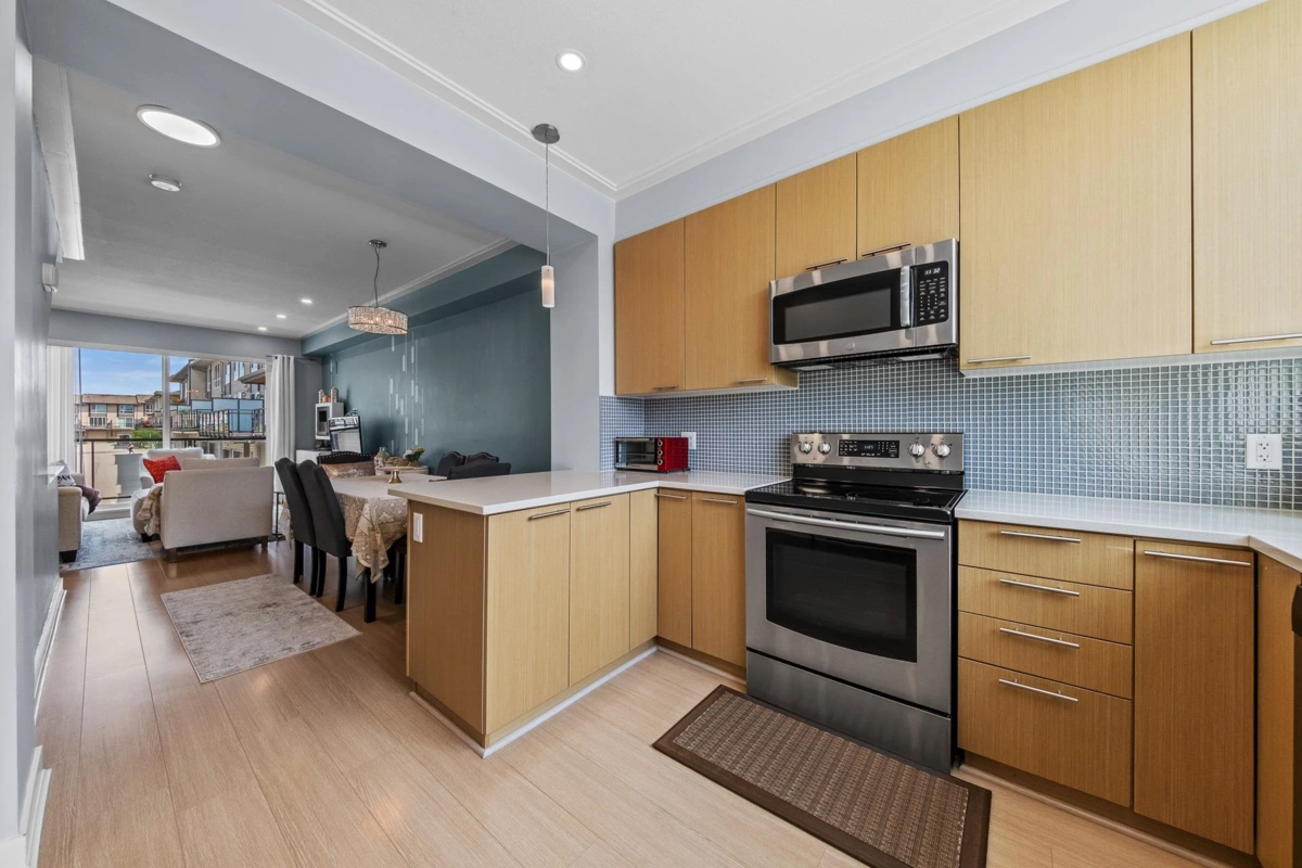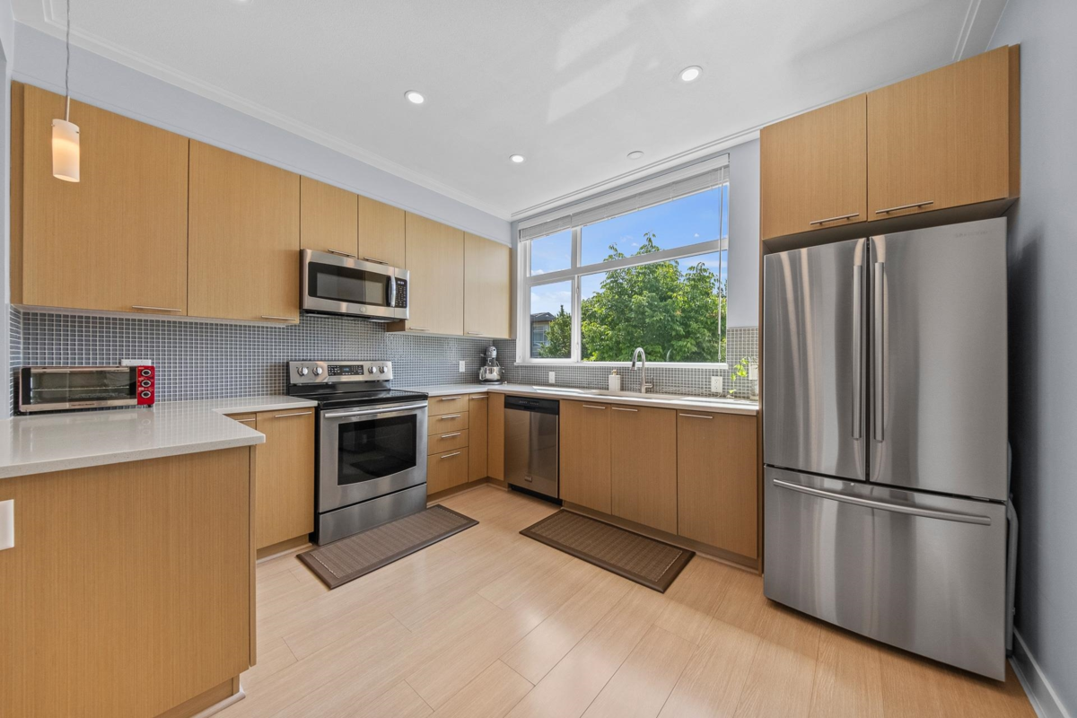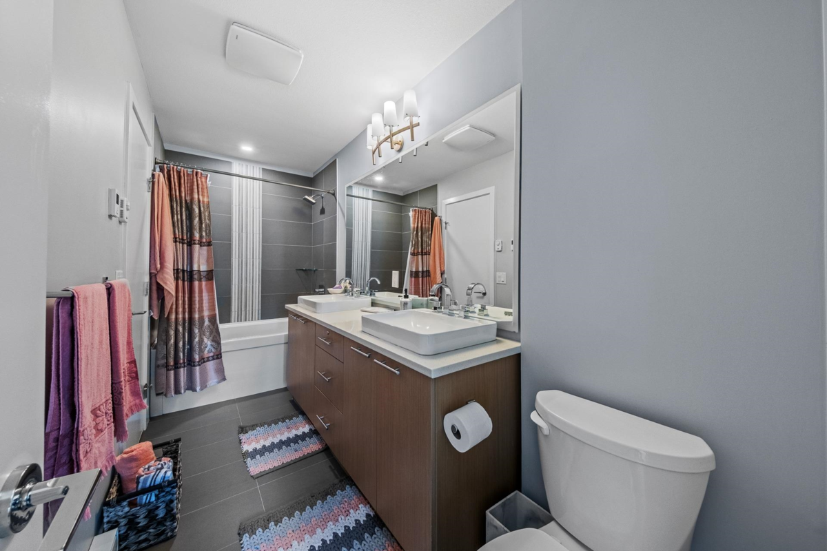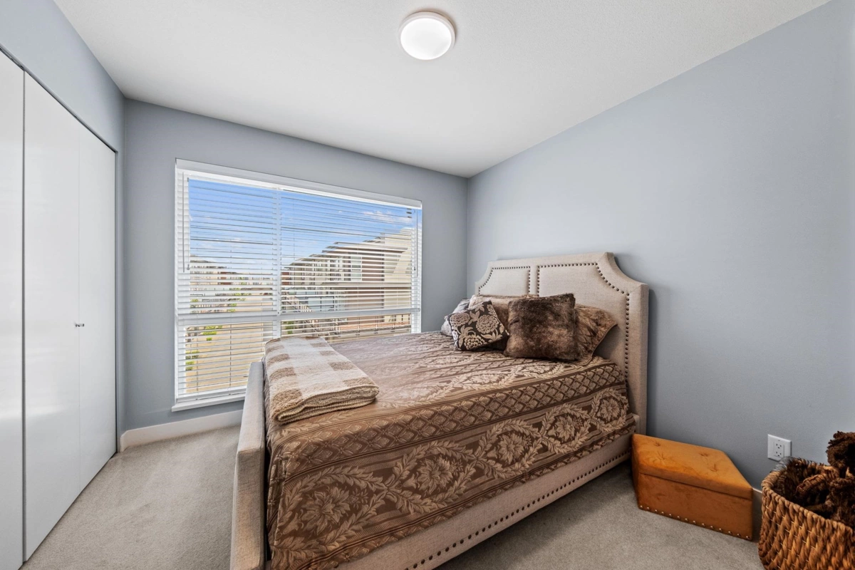 This is your chance to get a beautiful 2 bedroom townhouse, featuring stunning west coast design, in the Breeze development by Adera. This unit includes an open concept living, dining, kitchen area on the main floor with a large sliding door which leads on to the balcony overlooking the lane behind (no neighbours staring directly into your unit!). Upstairs you'll find 2 bedrooms, laundry, and a spacious washroom. Downstairs, you will find a flex area coming in from the entry, great for an office, den, or more! There is also a full washroom downstairs, and access to a fully enclosed garage. Behind the unit you will find a carport and visitor parking! Directly in front of the unit is the amenity centre where you can access the gym, sauna, playground, and more!