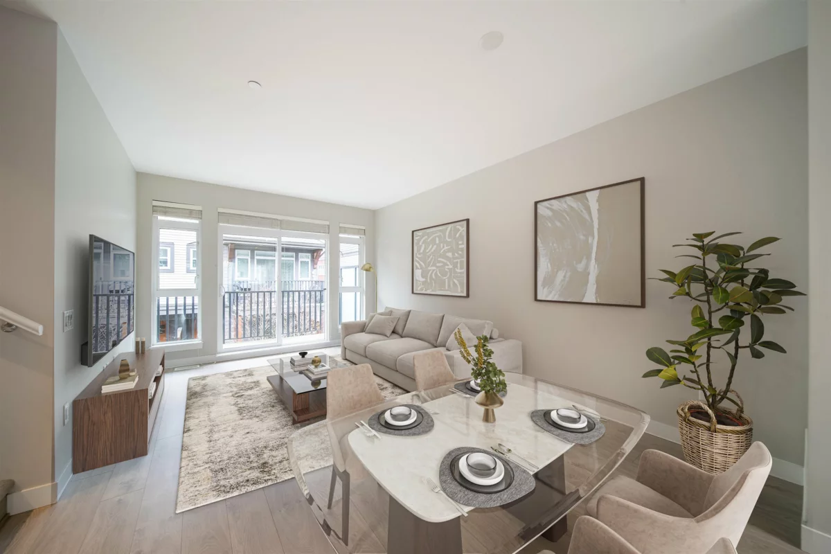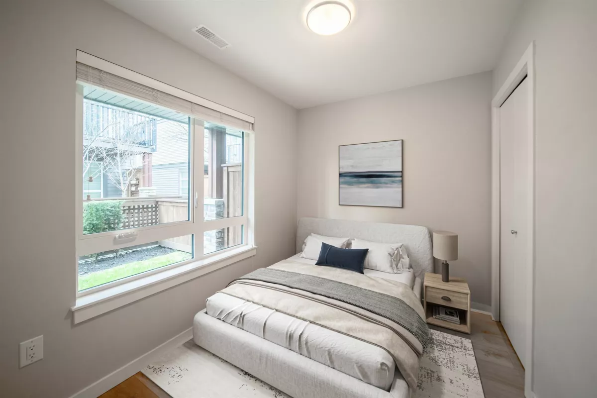 Welcome to Wembley by Citimark! A modern townhouse community in Richmond’s East Cambie. This 1,567sqft, 4 BED+3.5 BATH home offers a thoughtfully designed layout & high-end finishes. This sought after floor plan features a full bdrm & bath on the lower level, perfect for guests/extended family. The bright main level boasts an open-concept design, 9' ceilings, & oversized windows w/ an unobstructed view of the playground. The gourmet kitchen includes Fisher & Paykel appl, quartz countertops, large island & premium cabinetry. Upstairs, 3 spacious bedrooms & the spa-like ensuite w/ double sinks. Enjoy energy-efficient geothermal heating & cooling. Side-by-side double garage offers ample parking & storage. Located near parks, schools, shopping & transit.