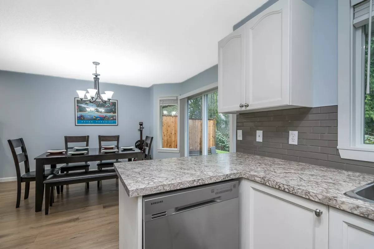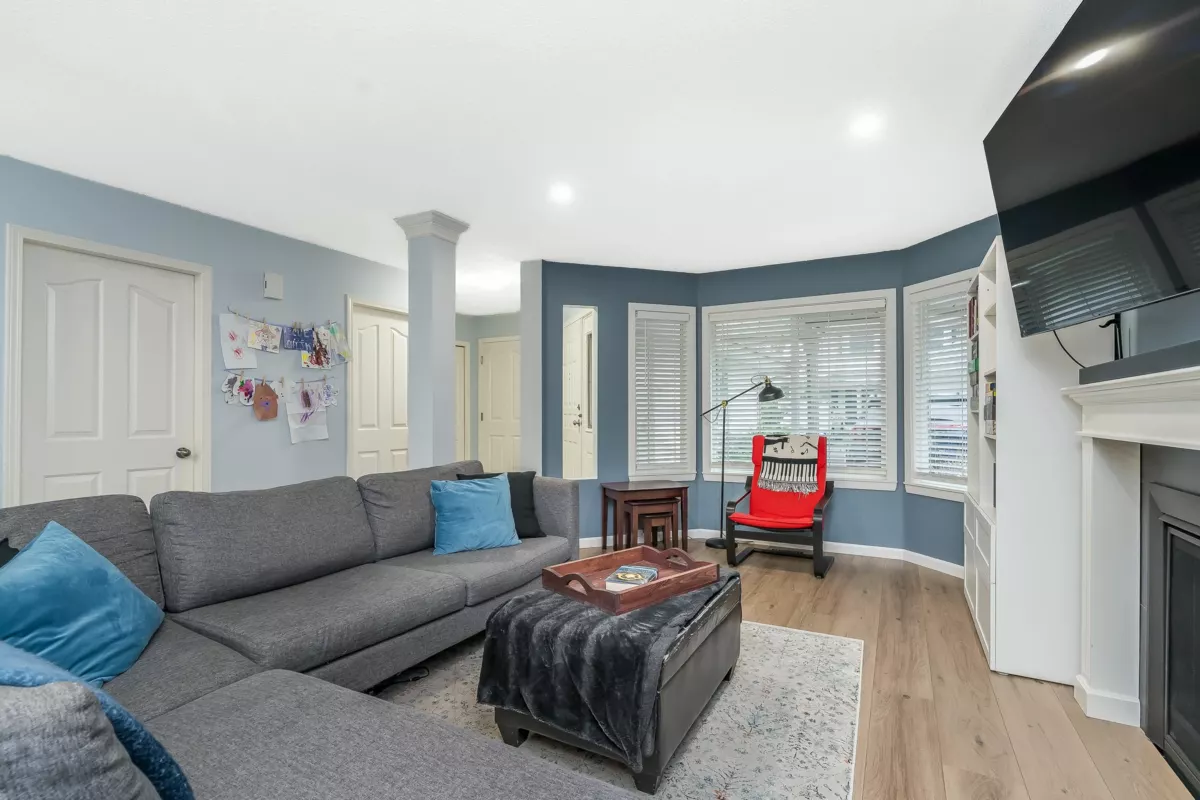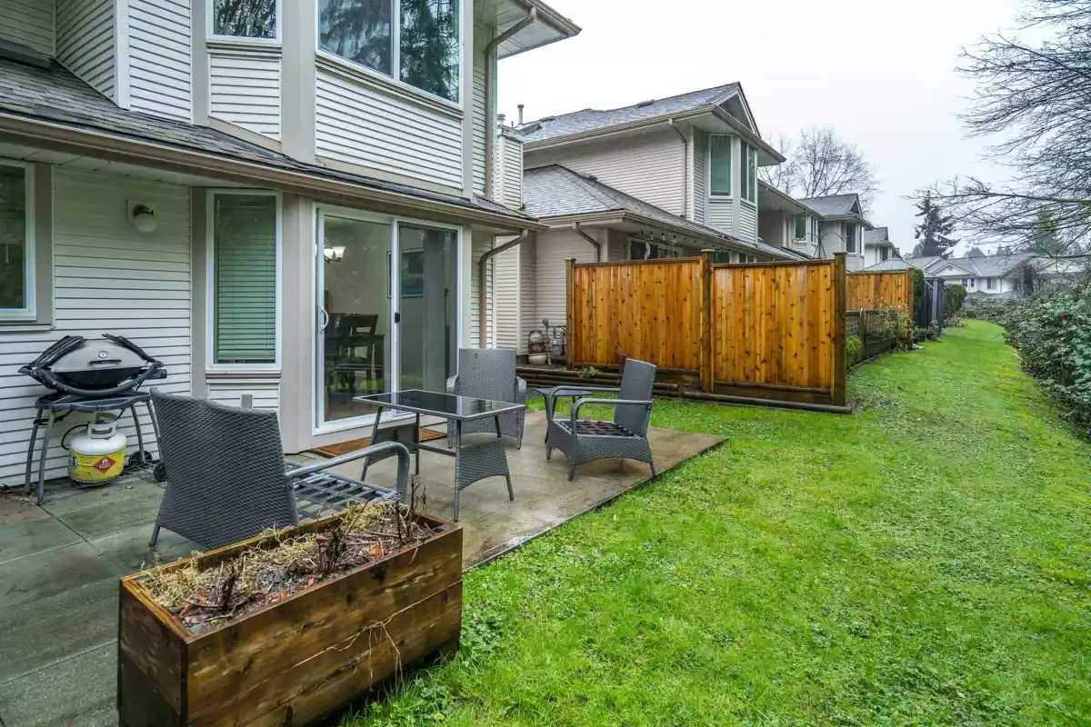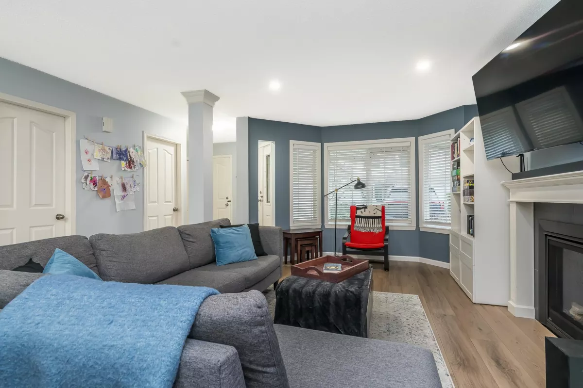 BRIDLEWOODS – in the heart of Walnut Grove. This 1,567 sq. ft. two-storey townhome offers an ideal layout and a preferred end-unit location backing onto a private greenbelt. The main floor features a spacious living and dining area with a cozy gas fireplace, updated laminate flooring, a 2-piece bathroom, and convenient in-suite laundry. The bright kitchen and eating nook open directly to the rear patio and yard—perfect for summer BBQs and entertaining. Upstairs you’ll find 3 bedrooms, including a large primary suite, plus 2 full bathrooms. Parking includes a single garage and an additional spot right out front. Family and pet-friendly complex in a prime location close to schools, shopping, restaurants, and parks.
