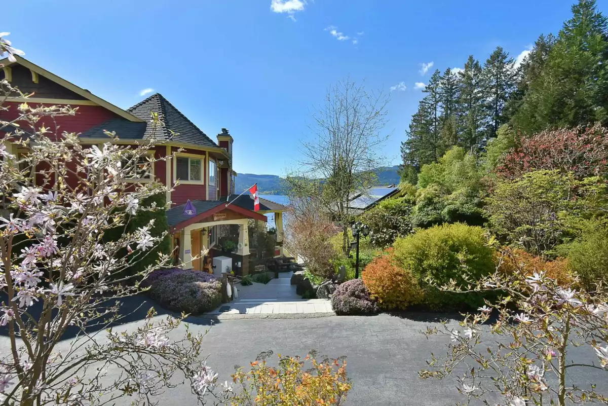 Come to the Beach! Experience waterfront living with this stunning 4000+ sq. ft. craftsman-style home & 700 sq. ft. cottage. Designed for comfort & luxury, this 4-bed, 5-bathrooms retreat offers seamless indoor-outdoor living. Wake up to breathtaking ocean views from multiple decks & patios. The open-concept main level boasts a gourmet kitchen & primary suite. Beach level, enjoy a games room, media room & extra ensuite. Step outside to landscaped grounds with boardwalk paths leading to a private sandy beach—perfect for swimming, kayaking & paddleboarding. Relax in the gazebo, fire pit, BBQ shack, steam room & hot tub. A rare opportunity to own a true coastal sanctuary for your family!