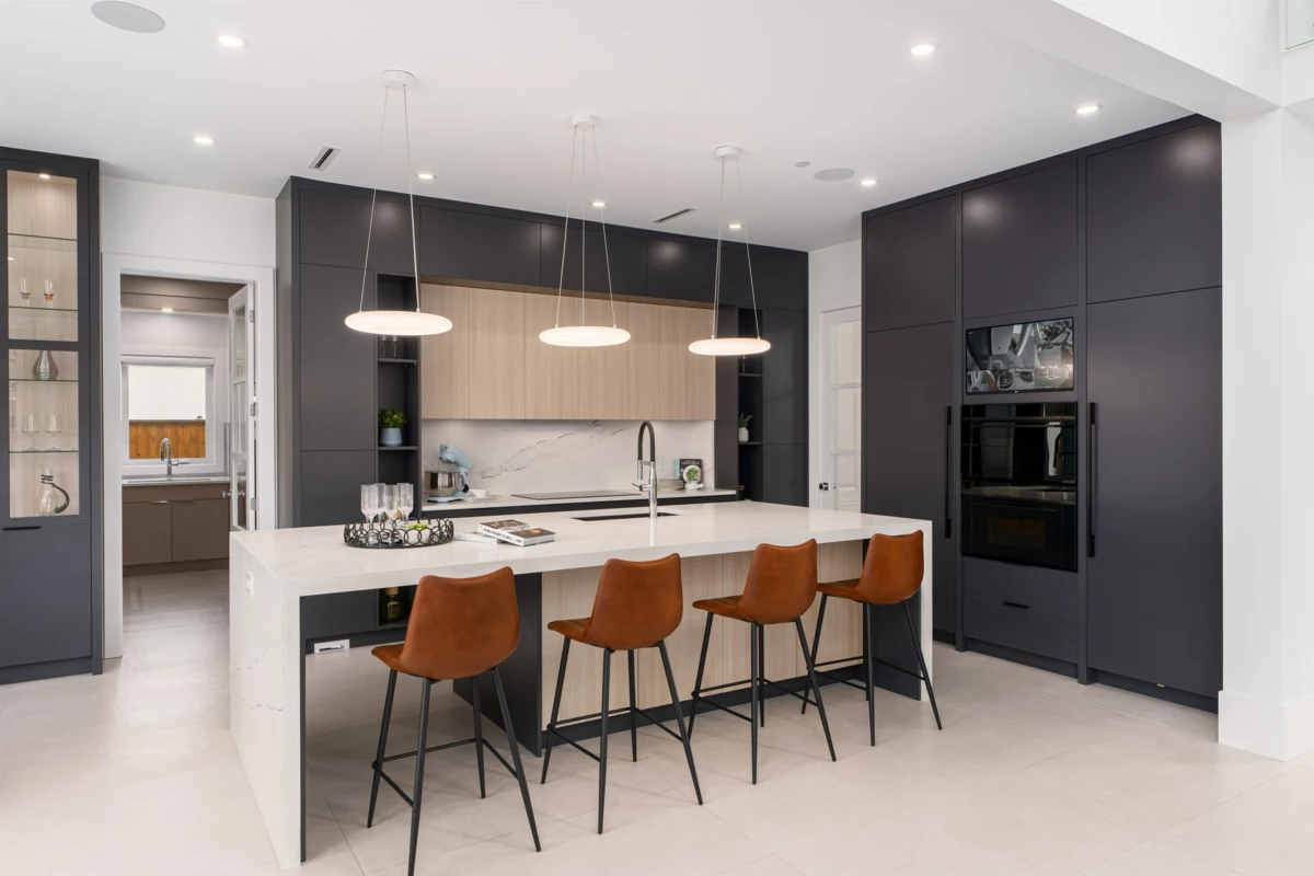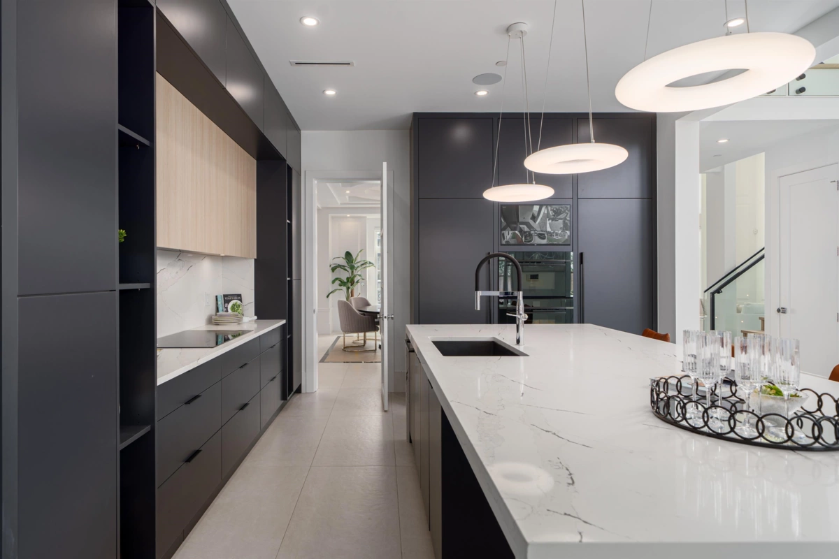 Beautifully appointed custom built home with highest standards to design & detail. Elegant and open floor plan with high ceilings in Living room, Family room and Foyer. Features 4 bedrooms, Flex room with 5 baths up with a bedroom with full ensuite on the ground level. Huge kitchen and wok kitchen open to a generous size family room. Top of the line appliances and fixtures. Large theatre room with a custom bar, perfect for entertaining or family time. Fully automated home with online access. Fire sprinklers throughout. Secured entry with front gate in low traffic street with all new homes with underground services. Centrally located with easy access to all levels of schools, transit, shopping, recreation and City Centre. Quality materials and craftsmanship. View anytime.