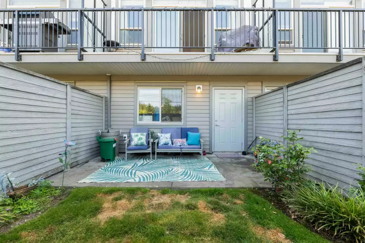 2 BEDROOM, 2.5 BATH townhome, approx 1200 sqft in Argyle, a centrally located community near loads of amenities with easy Hwy 1 access. Bright, open layout on the main includes kitchen, dining, POWDER ROOM, and living room with sliding patio doors leading to a spacious balcony - perfect for morning coffee. Upstairs features 2 bdrms, including the primary with full ensuite and full-sized shower. The generously sized second bdrm offers a WI clst, plus there's a full main bath and convenient laundry up. Stylish modern finishes include white shaker-style kitchen cabinetry with large island ideal for the home chef. Stnlss appliances include built-in microwave and gas range. Enjoy a partially covered patio with yard access out back. Just minutes to UFV, shopping and restaurants.