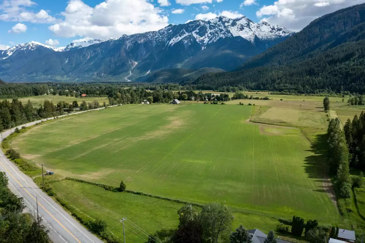 A legacy property in the heart of Pemberton Meadows. Just two minutes from town, this sun-drenched 75+ acre parcel offers flat, fertile land, sweeping 360° views, and an iconic sightline to Mount Currie. With an existing cabin, workshop, and one of the most photographed barns in the valley, the stage is set for something special. Build your dream home, grow your vision, or simply enjoy the space and serenity of this one-of-a-kind setting. With quick access to the backcountry and rare zoning flexibility, the potential here is as vast as the views. Rendering depicts development potential.