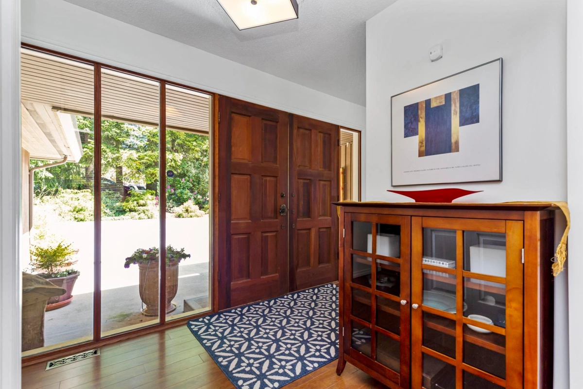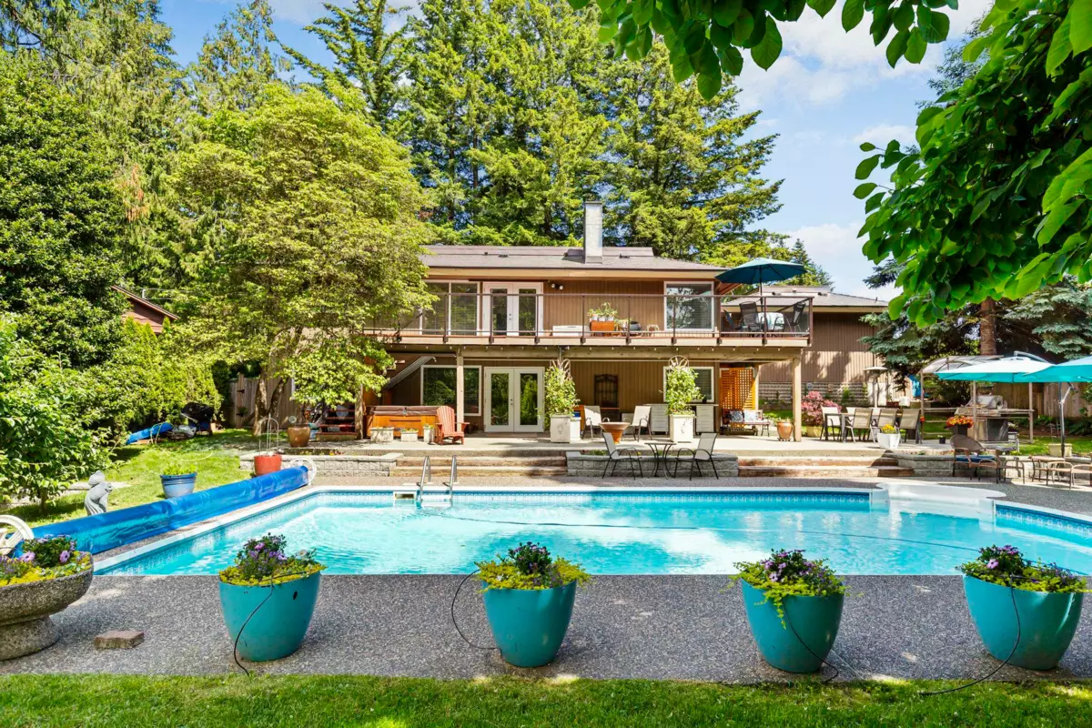 Extraordinary mid-century modern rancher, with seamless indoor-outdoor living and entertaining. Nestled on a 1/2 acre lot, this exquisite home features 4 bds, 3 bths w/ample storage, blending functionality & luxury. Expansive European designer kitchen, w/ quartz countertops, and modern cork flooring. Spa-like main bath w/ soaker tub, luxurious shower, and large walk-in closet. Sprawling deck looking over hot tub and 36 x 18 heated saltwater pool. Double semi-detached garage w/ breezeway leads to park like yard. Aluminum shingle roof, AC, hidden gutter system, and extensive concrete work. 20,868 sf property offers a serene escape. Plus, it presents a unique 1.67 acre Development opportunity with 7679 Peterson & 7680 Strachan. MT1 or MR1 compliant within OCP. Call for Developer info!
