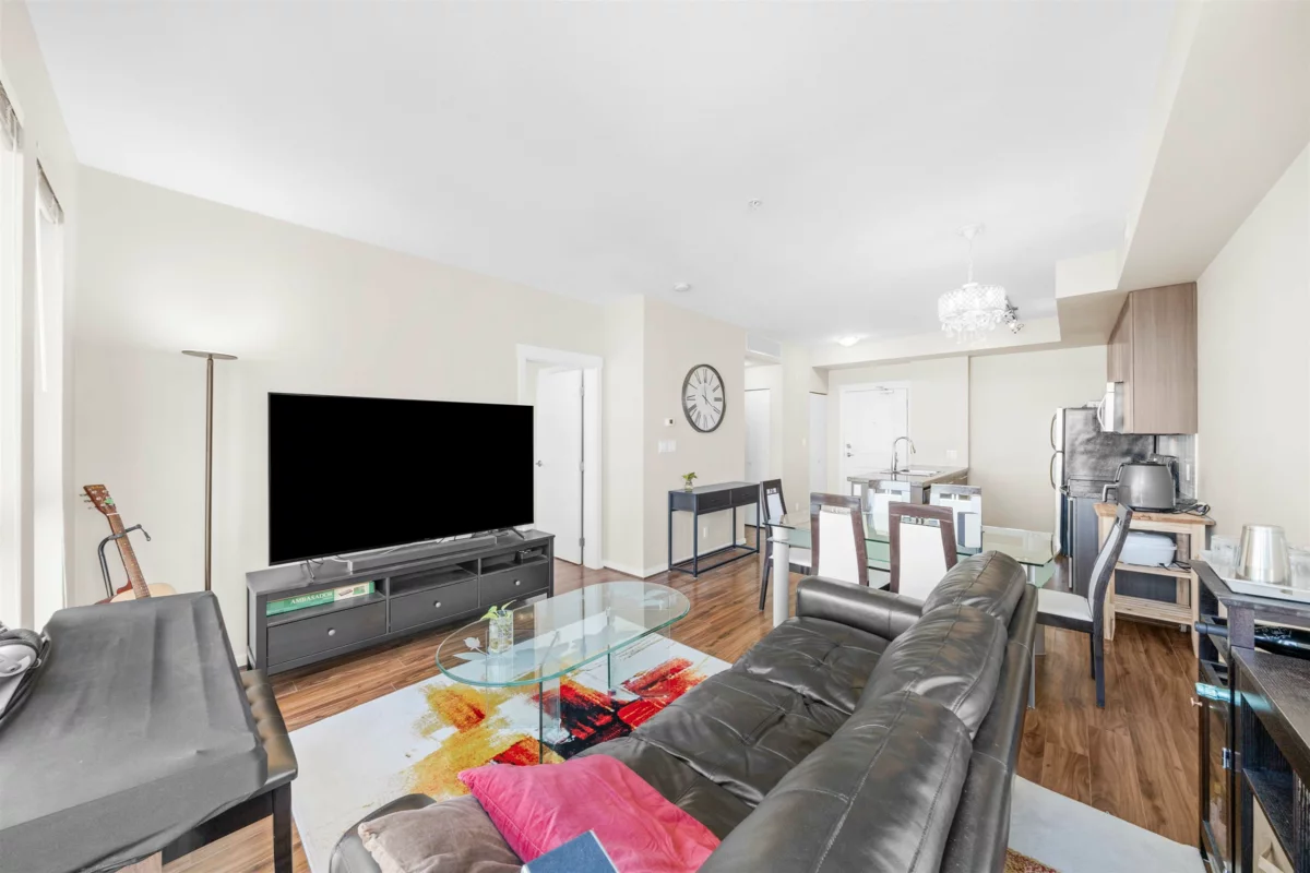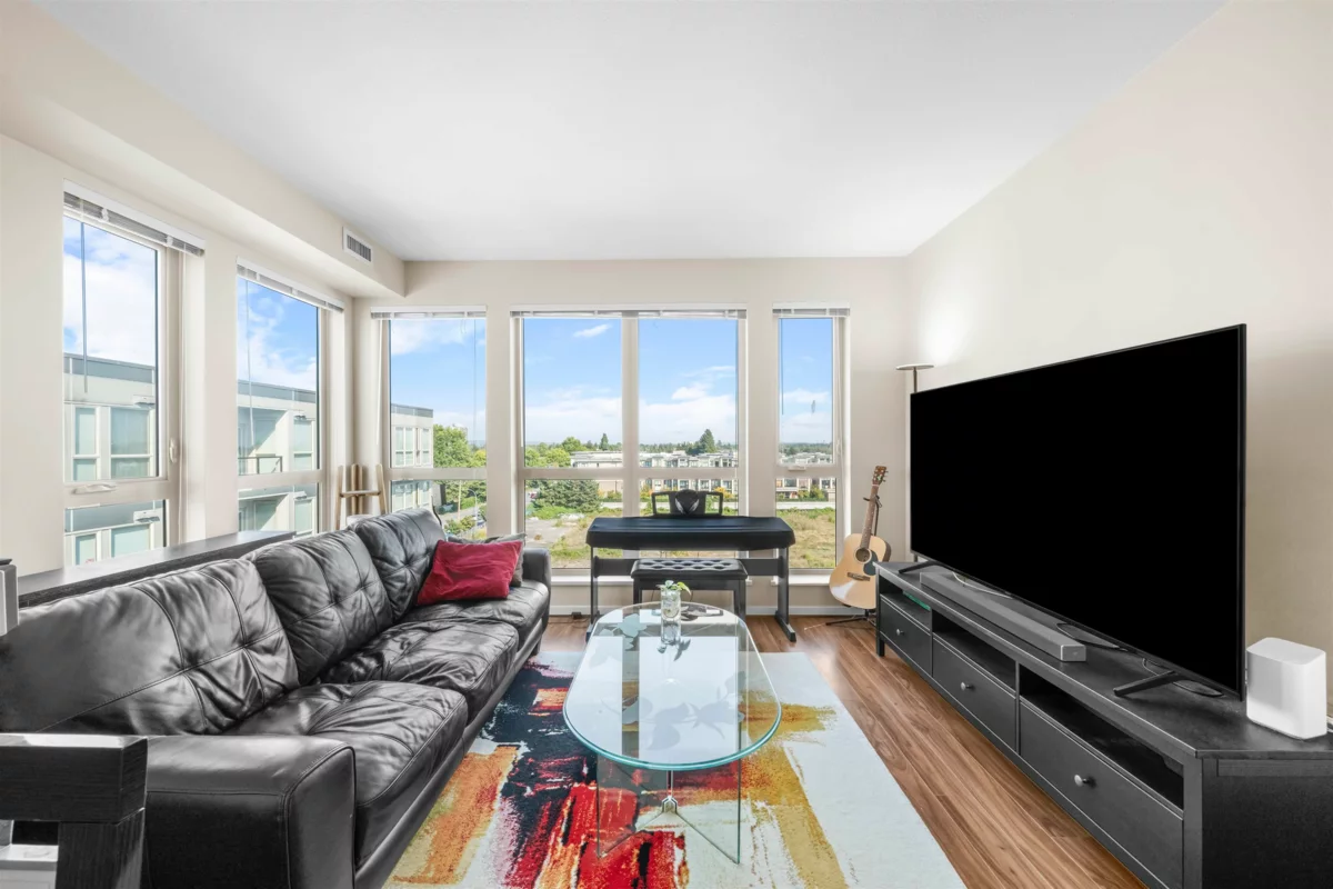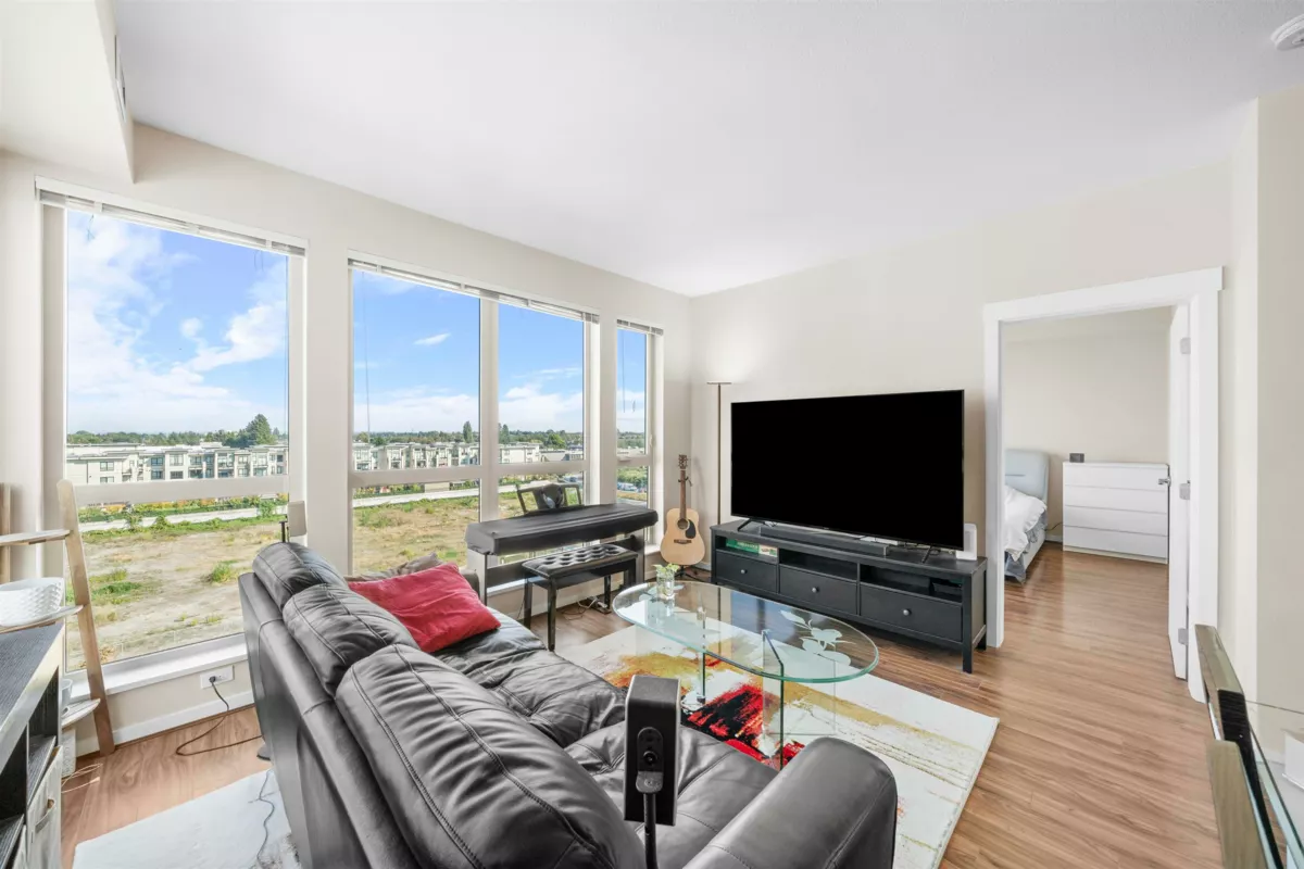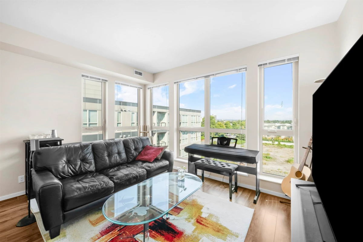 Welcome to REMY! This well cared for North East PENTHOUSE CORNER 2 bed 1 bath home is perfect for young families and investors! This home offers a large and spacious layout, floor to ceiling windows for natural light, laminate flooring throughout, 9’ft ceilings, geothermal heating + AC (INCLUDED IN STRATA FEES), granite countertops, S/S appliances & WALK IN CLOSET in the primary bedroom! Fitness centre, garden & DAYCARE located in complex. Located walking distance to Walmart, Superstore, Starbucks, McDonalds, Aberdeen SkyTrain, plus tons of other great restaurants & shops. EV charging available in complex. SCHOOLS: Tomsett Elem, A.R. MacNeill Sec & Pythagoras Academy (Private).