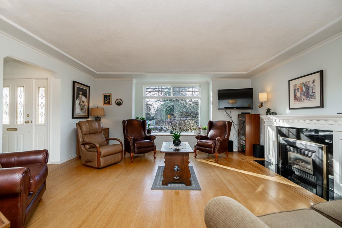 Sought after Crest area in East Burnaby! This well cared for family home has had extensive renovations and permitted additions in 2003. The bright living room features a bay window, fireplace and bordered hardwood flooring in excellent condition. The updated kitchen includes a centre island, extra built-in cabinetry and a large eating area with French doors opening onto a private deck. Primary bdrm has an ensuite, plus 2 additional bdrms on the main. The bsmt highlights include a large rec room, cozy fireplace, two bdrms, a laundry room, root cellar and a 3rd bathroom. The mature landscaping features treed gardens with paver stone walks, trellises and craftsman detailing. Secure RV parking and a 2 car garage + shop off the lane. Central location with many parks and shopping nearby.